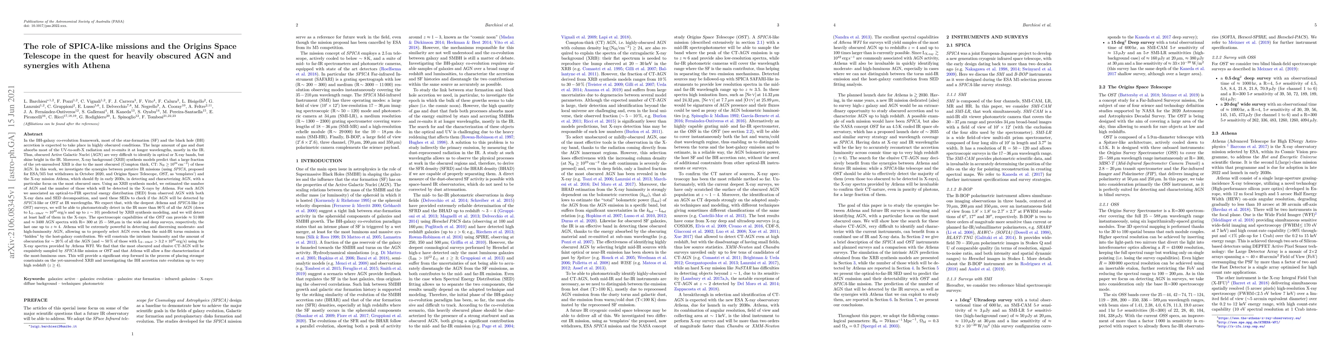 This research paper explores how missions like SPICA and Origins Space Telescope can help detect and study heavily obscured Active Galactic Nuclei (AGN), which are difficult to identify in other wavelengths, by combining their IR and X-ray capabilities with the Athena mission.