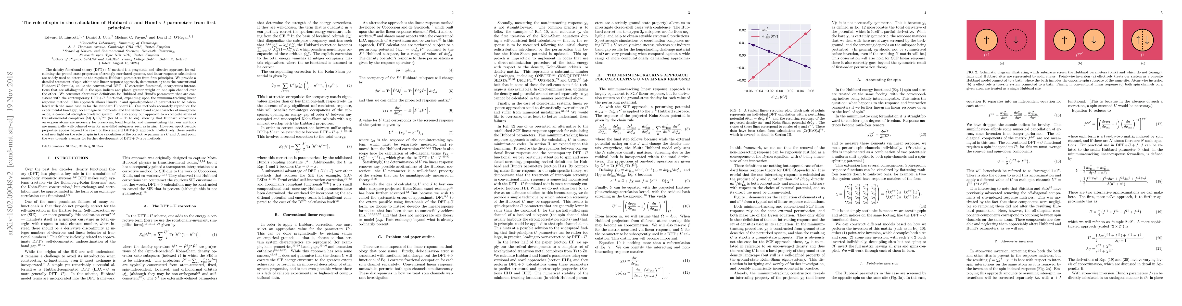 The density functional theory (DFT)+$U$ method is a pragmatic and effective approach for calculating the ground-state properties of strongly-correlated systems, and linear response calculations are widely used to determine the requisite Hubbard parameters from first principles. We provide a detailed treatment of spin within this linear response approach, demonstrating that the conventional Hubbard $U$ formula, unlike the conventional DFT+$U$ corrective functional, incorporates interactions that are off-diagonal in the spin indices and places greater weight on one spin channel over the other. We construct alternative definitions for Hubbard and Hund's parameters that are consistent with the contemporary DFT+$U$ functional, expanding upon the minimum-tracking linear response method. This approach allows Hund's $J$ and spin-dependent $U$ parameters to be calculated with the same ease as for the standard Hubbard $U$. Our methods accurately reproduce the experimental band gap, local magnetic moments, and the valence band edge character of manganese oxide, a canonical strongly-correlated system. We also apply our approach to a complete series of transition-metal complexes [M(H$_2$O)$_6$]$^{n+}$ (for M = Ti to Zn), showing that Hubbard corrections on oxygen atoms are necessary for preserving bond lengths, and demonstrating that our methods are numerically well-behaved even for near-filled subspaces such as in zinc. However, spectroscopic properties appear beyond the reach of the standard DFT+$U$ approach. Collectively, these results shed new light on the role of spin in the calculation of the corrective parameters $U$ and $J$, and point the way towards avenues for further development of DFT+$U$-type methods.