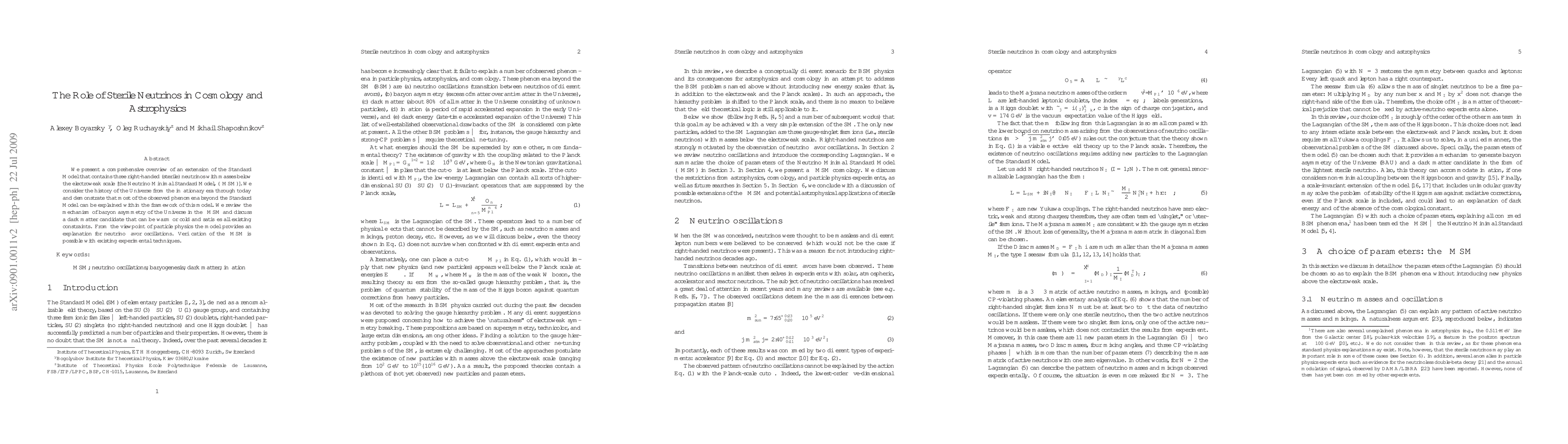 We present a comprehensive overview of an extension of the Standard Model that contains three right-handed (sterile) neutrinos with masses below the electroweak scale [the Neutrino Minimal Standard Model, (nuMSM)]. We consider the history of the Universe from the inflationary era through today and demonstrate that most of the observed phenomena beyond the Standard Model can be explained within the framework of this model. We review the mechanism of baryon asymmetry of the Universe in the nuMSM and discuss a dark matter candidate that can be warm or cold and satisfies all existing constraints. From the viewpoint of particle physics the model provides an explanation for neutrino flavor oscillations. Verification of the nuMSM is possible with existing experimental techniques.