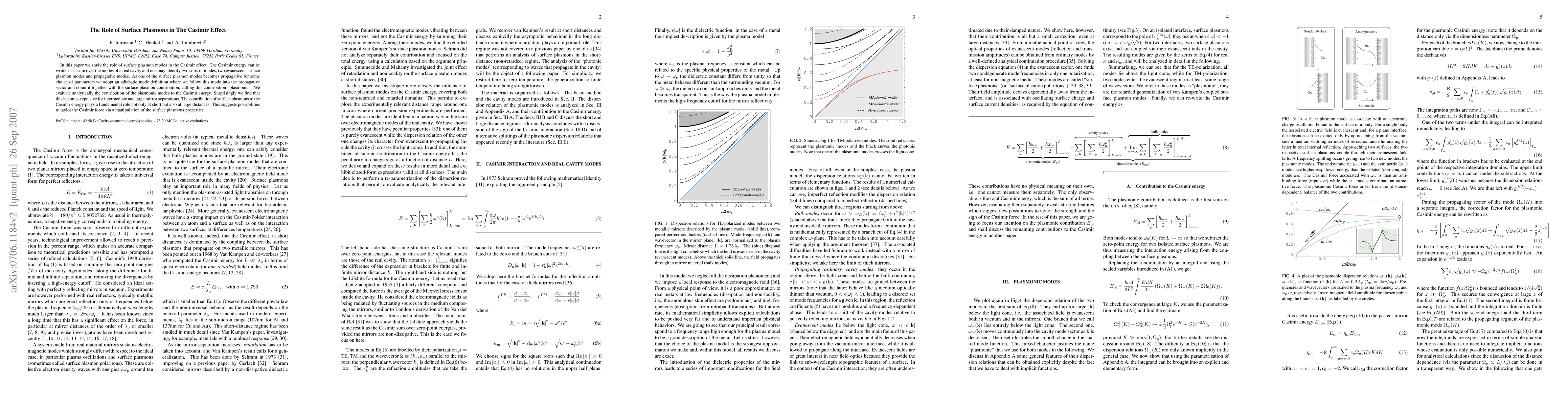 This paper explores how surface plasmon modes influence the Casimir effect, finding that plasmonic contributions can become repulsive at intermediate to large mirror separations. The study suggests that manipulating surface plasmon properties could tailor the Casimir force over a range of distances.