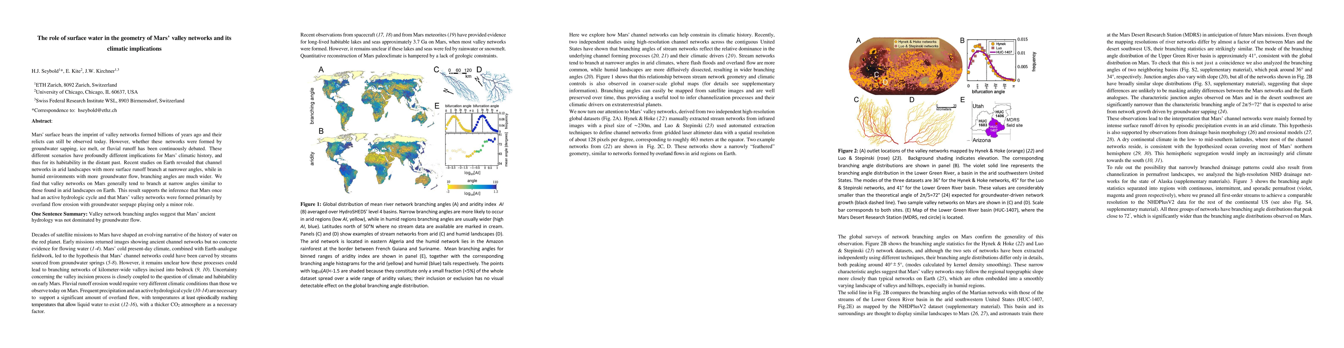 Mars' surface bears the imprint of valley networks formed billions of years ago and their relicts can still be observed today. However, whether these networks were formed by groundwater sapping, ice melt, or fluvial runoff has been continuously debated. These different scenarios have profoundly different implications for Mars' climatic history, and thus for its habitability in the distant past. Recent studies on Earth revealed that channel networks in arid landscapes with more surface runoff branch at narrower angles, while in humid environments with more groundwater flow, branching angles are much wider. We find that valley networks on Mars generally tend to branch at narrow angles similar to those found in arid landscapes on Earth. This result supports the inference that Mars once had an active hydrologic cycle and that Mars' valley networks were formed primarily by overland flow erosion with groundwater seepage playing only a minor role.