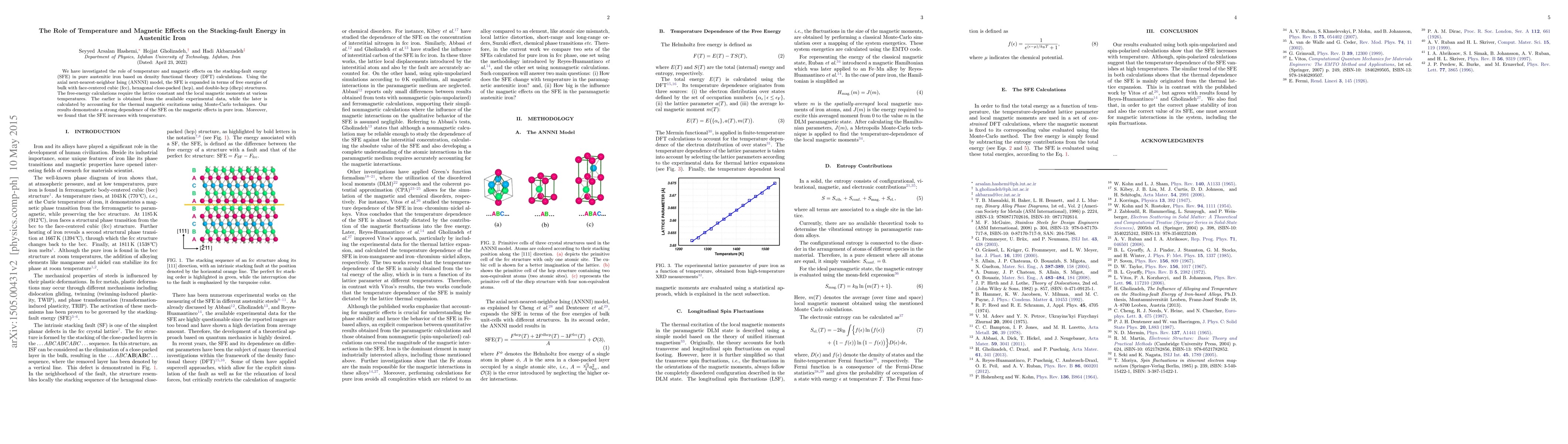 This study uses Density Functional Theory and the ANNNI model to investigate how temperature and magnetic effects influence the stacking-fault energy in austenitic iron. Results show a significant impact of magnetic effects on the SFE, with the SFE increasing as temperature rises.