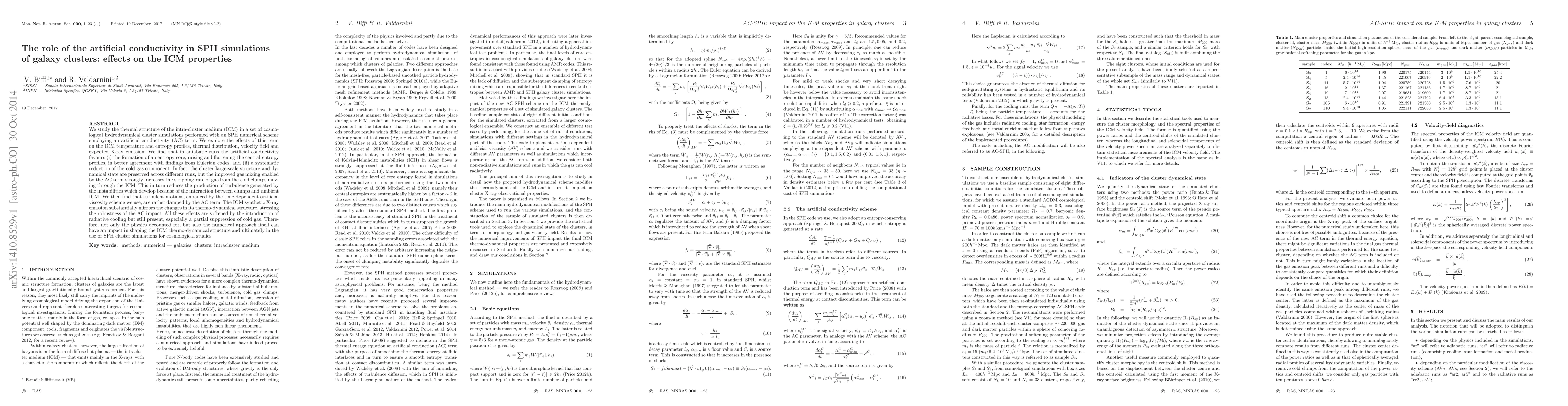 This paper explores the impact of artificial conductivity in Smoothed Particle Hydrodynamics (SPH) simulations on the intra-cluster medium's (ICM) thermal properties, finding that it enhances gas mixing and reduces cold gas formation, while also affecting the ICM's entropy profile and X-ray emission. The effects are moderated by radiative cooling but still influence the simulation's overall dynamical state.