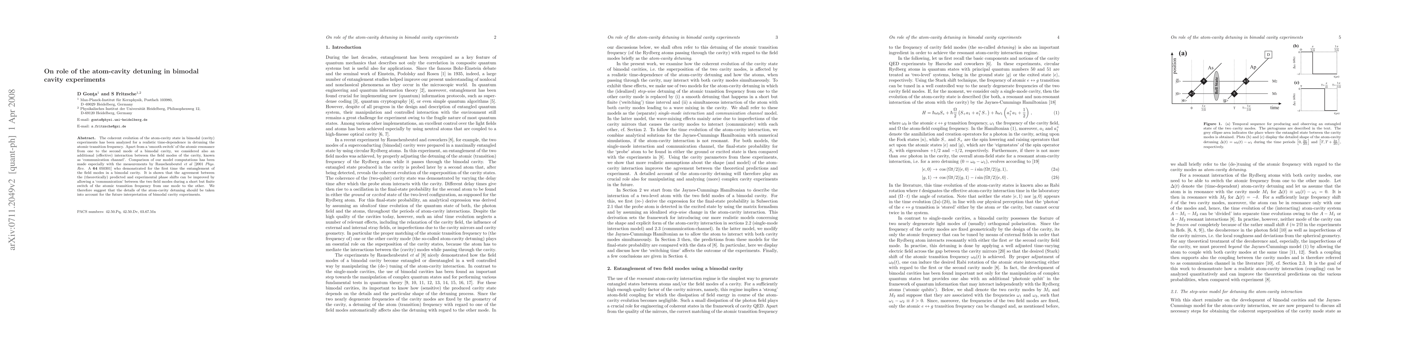 This paper investigates the impact of atom-cavity detuning on coherent evolution in bimodal cavity experiments, proposing that a "communication channel" between cavity modes enhances theoretical predictions. It suggests that accounting for the atom-cavity detuning and the interaction between cavity modes can improve the interpretation of experimental results, as demonstrated by the entanglement findings of Rauschenbeutel et al.