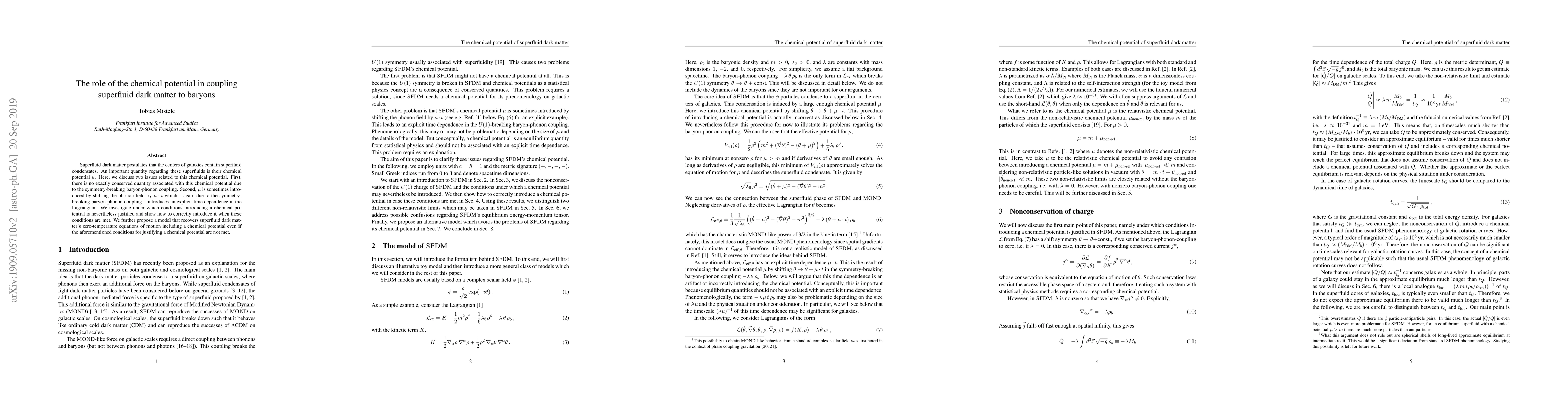 Superfluid dark matter postulates that the centers of galaxies contain superfluid condensates. An important quantity regarding these superfluids is their chemical potential $ \mu $. Here, we discuss two issues related to this chemical potential. First, there is no exactly conserved quantity associated with this chemical potential due to the symmetry-breaking baryon-phonon coupling. Second, $ \mu $ is sometimes introduced by shifting the phonon field by $ \mu \cdot t $ which -- again due to the symmetry-breaking baryon-phonon coupling -- introduces an explicit time dependence in the Lagrangian. We investigate under which conditions introducing a chemical potential is nevertheless justified and show how to correctly introduce it when these conditions are met. We further propose a model that recovers superfluid dark matter's zero-temperature equations of motion including a chemical potential even if the aforementioned conditions for justifying a chemical potential are not met.
