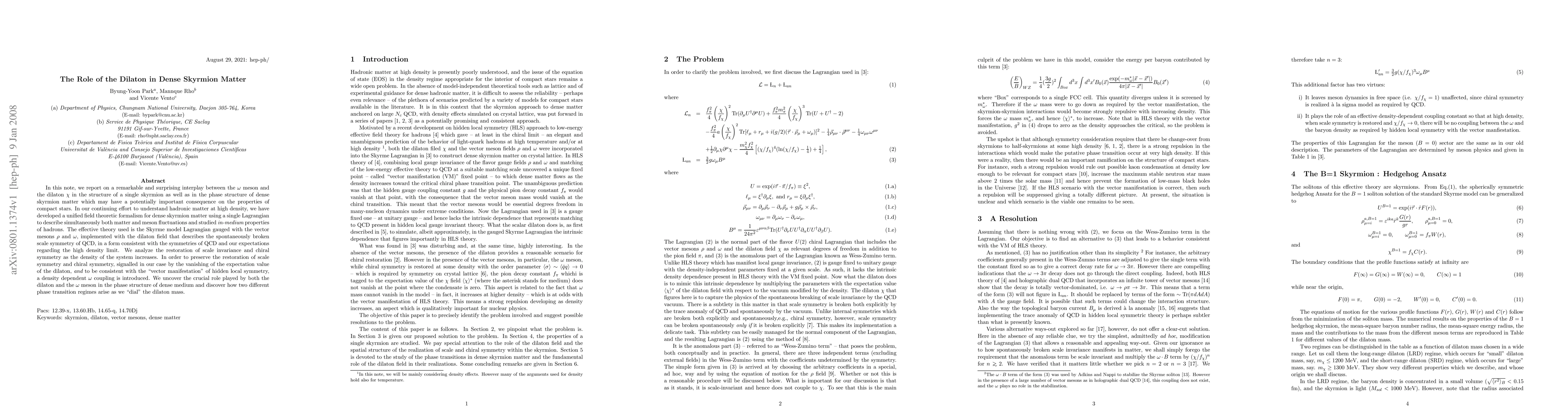 In this note, we report on a remarkable and surprising interplay between the omega meson and the dilaton chi in the structure of a single skyrmion as well as in the phase structure of dense skyrmion matter which may have a potentially important consequence on the properties of compact stars. In our continuing effort to understand hadronic matter at high density, we have developed a unified field theoretic formalism for dense skyrmion matter using a single Lagrangian to describe simultaneously both matter and meson fluctuations and studied in-medium properties of hadrons. The effective theory used is the Skyrme model Lagrangian gauged with the vector mesons rho and omega, implemented with the dilaton field that describes the spontaneously broken scale symmetry of QCD, in a form consistent with the symmetries of QCD and our expectations regarding the high density limit. We analyze the restoration of scale invariance and chiral symmetry as the density of the system increases. In order to preserve the restoration of scale symmetry and chiral symmetry, signalled in our case by the vanishing of the expectation value of the dilaton, and to be consistent with the vector manifestation of hidden local symmetry, a density dependent omega coupling is introduced. We uncover the crucial role played by both the dilaton and the omega meson in the phase structure of dense medium and discover how two different phase transition regimes arise as we dial the dilaton mass.