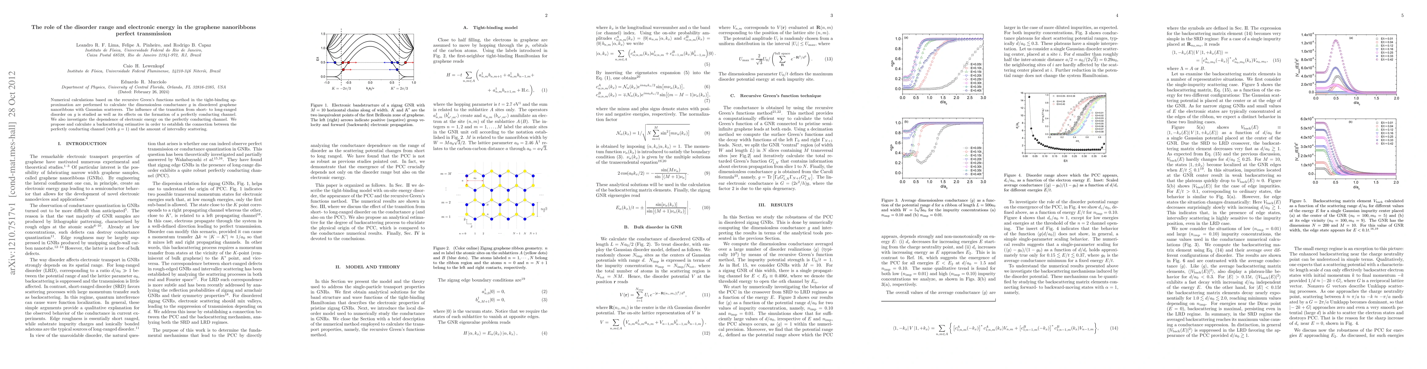 This study uses numerical calculations via the recursive Green's functions method to examine graphene nanoribbon conductance. It explores how disorder range transitions and electronic energy impact perfect transmission, proposing a backscattering estimate to link perfect conducting channels with intervalley scattering.