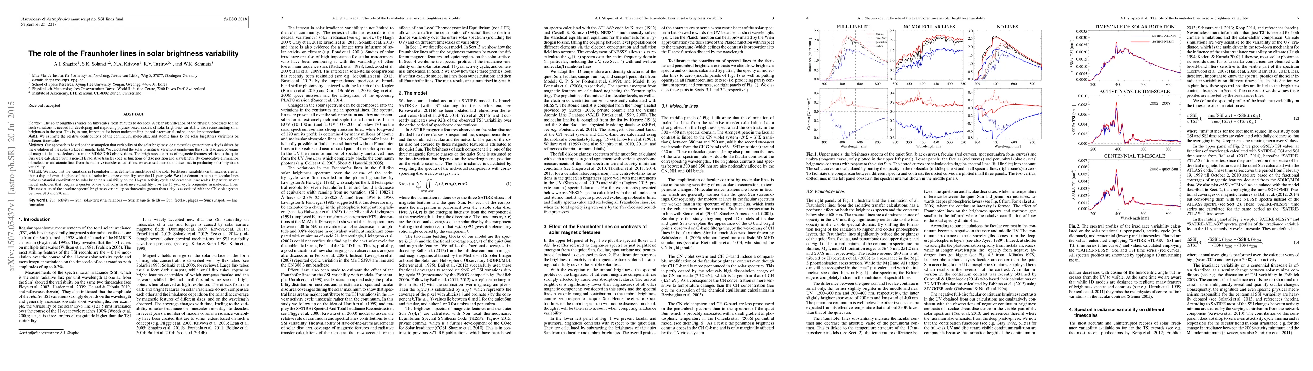 The solar brightness varies on timescales from minutes to decades. A clear identification of the physical processes behind such variations is needed for developing and improving physics-based models of solar brightness variability and reconstructing solar brightness in the past. This is, in turn, important for better understanding the solar-terrestrial and solar-stellar connections. We estimate the relative contributions of the continuum, molecular, and atomic lines to the solar brightness variations on different timescales. Our approach is based on the assumption that variability of the solar brightness on timescales greater than a day is driven by the evolution of the solar surface magnetic field. We calculated the solar brightness variations employing the solar disc area coverage of magnetic features deduced from the MDI/SOHO observations. The brightness contrasts of magnetic features relative to the quiet Sun were calculated with a non-LTE radiative transfer code as functions of disc position and wavelength. By consecutive elimination of molecular and atomic lines from the radiative transfer calculations, we assessed the role of these lines in producing solar brightness variability. We show that the variations in Fraunhofer lines define the amplitude of the solar brightness variability on timescales greater than a day and even the phase of the total solar irradiance variability over the 11-year cycle. We also demonstrate that molecular lines make substantial contribution to solar brightness variability on the 11-year activity cycle and centennial timescales. In particular, our model indicates that roughly a quarter of the total solar irradiance variability over the 11-year cycle originates in molecular lines. The maximum of the absolute spectral brightness variability on timescales greater than a day is associated with the CN violet system between 380 and 390 nm.