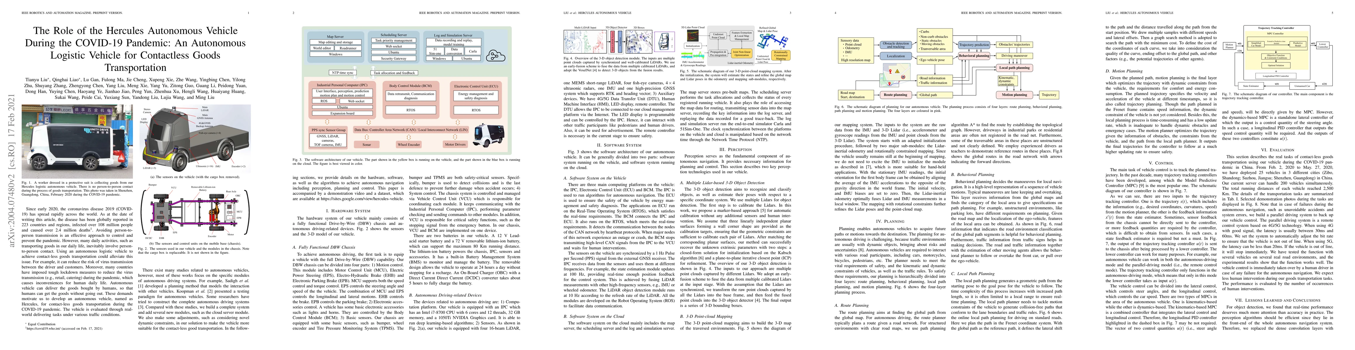 The paper discusses the development and deployment of the Hercules autonomous vehicle for contactless goods transportation during the COVID-19 pandemic, aiming to reduce person-to-person contact and virus transmission. The vehicle's effectiveness is evaluated through real-world delivery tasks under various traffic conditions.