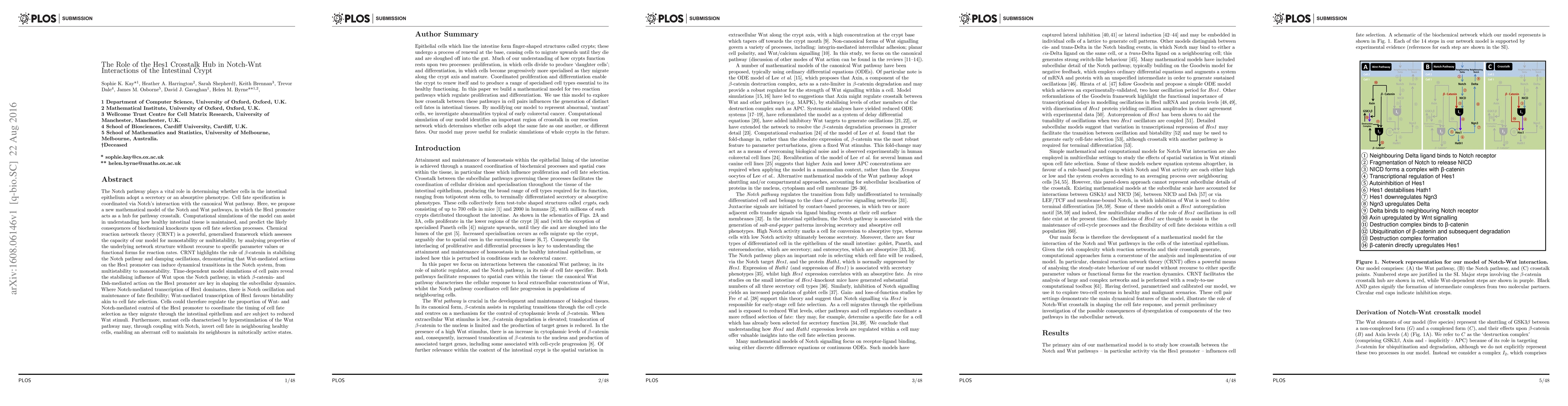 The Notch pathway plays a vital role in determining whether cells in the intestinal epithelium adopt a secretory or an absorptive phenotype. Cell fate specification is coordinated via Notch's interaction with the canonical Wnt pathway. Here, we propose a new mathematical model of the Notch and Wnt pathways, in which the Hes1 promoter acts as a hub for pathway crosstalk. Computational simulations of the model can assist in understanding how healthy intestinal tissue is maintained, and predict the likely consequences of biochemical knockouts upon cell fate selection processes. Chemical reaction network theory (CRNT) is a powerful, generalised framework which assesses the capacity of our model for monostability or multistability, by analysing properties of the underlying network structure without recourse to specific parameter values or functional forms for reaction rates. CRNT highlights the role of beta-catenin in stabilising the Notch pathway and damping oscillations, demonstrating that Wnt-mediated actions on the Hes1 promoter can induce dynamical transitions in the Notch system, from multistability to monostability. Time-dependent model simulations of cell pairs reveal the stabilising influence of Wnt upon the Notch pathway, in which beta-catenin- and Dsh-mediated action on the Hes1 promoter are key in shaping the subcellular dynamics. Where Notch-mediated transcription of Hes1 dominates, there is Notch oscillation and maintenance of fate flexibility; Wnt-mediated transcription of Hes1 favours bistability akin to cell fate selection. Cells could therefore regulate the proportion of Wnt- and Notch-mediated control of the Hes1 promoter to coordinate the timing of cell fate selection as they migrate through the intestinal epithelium and are subject to reduced Wnt stimuli.