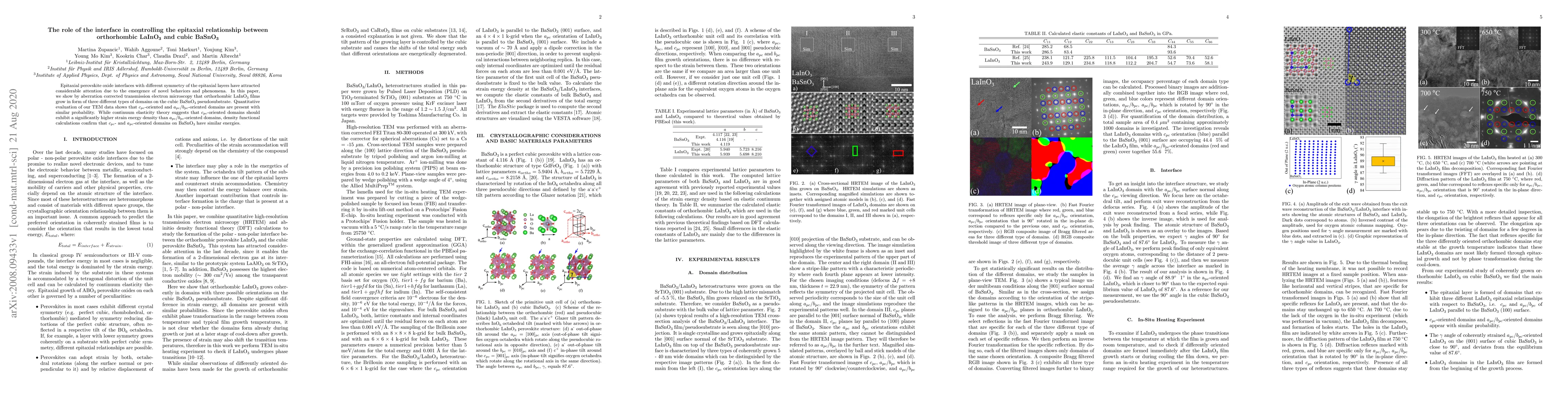 This paper investigates the epitaxial relationship between orthorhombic $\text{LaInO}_\text{3}$ films and cubic $\text{BaSnO}_\text{3}$ substrates using aberration corrected transmission electron microscopy, revealing three domain types. Density functional calculations show that despite higher predicted strain energy, $c_{pc}$-oriented and $a_{pc}/b_{pc}$-oriented domains have similar energies.