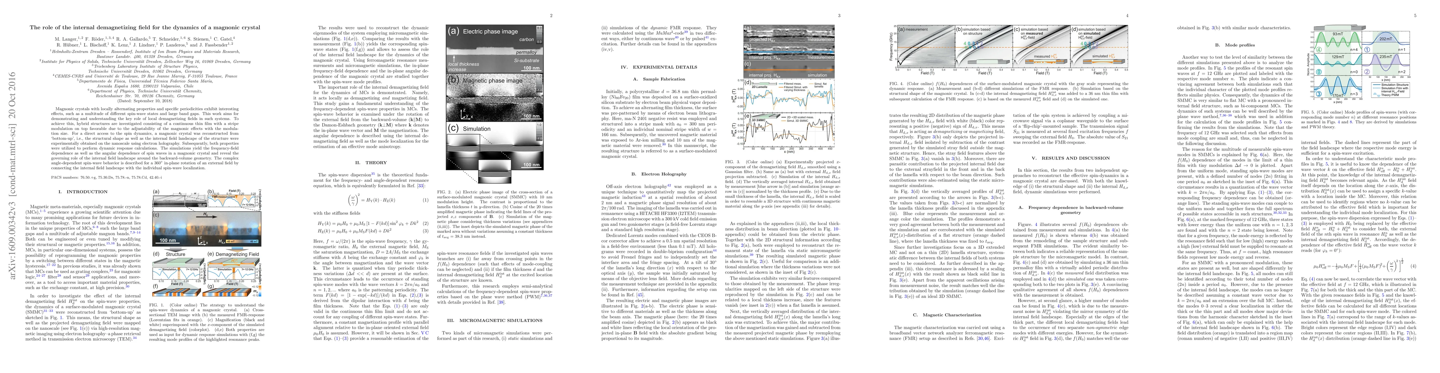 Magnonic crystals with locally alternating properties and specific periodicities exhibit interesting effects, such as a multitude of different spin-wave states and large band gaps. This work aims for demonstrating and understanding the key role of local demagnetizing fields in such systems. To achieve this, hybrid structures are investigated consisting of a continuous thin film with a stripe modulation on top favorable due to the adjustability of the magnonic effects with the modulation size. For a direct access to the spin dynamics, a magnonic crystal was reconstructed from `bottom-up', i.e., the structural shape as well as the internal field landscape of the structure were experimentally obtained on the nanoscale using electron holography. Subsequently, both properties were utilized to perform dynamic response calculations. The simulations yield the frequency-field dependence as well as the angular dependence of spin waves in a magnonic crystal and reveal the governing role of the internal field landscape around the backward-volume geometry. The complex angle-dependent spin-wave behavior is described for a 360 degree in-plane rotation of an external field by connecting the internal field landscape with the individual spin-wave localization.
