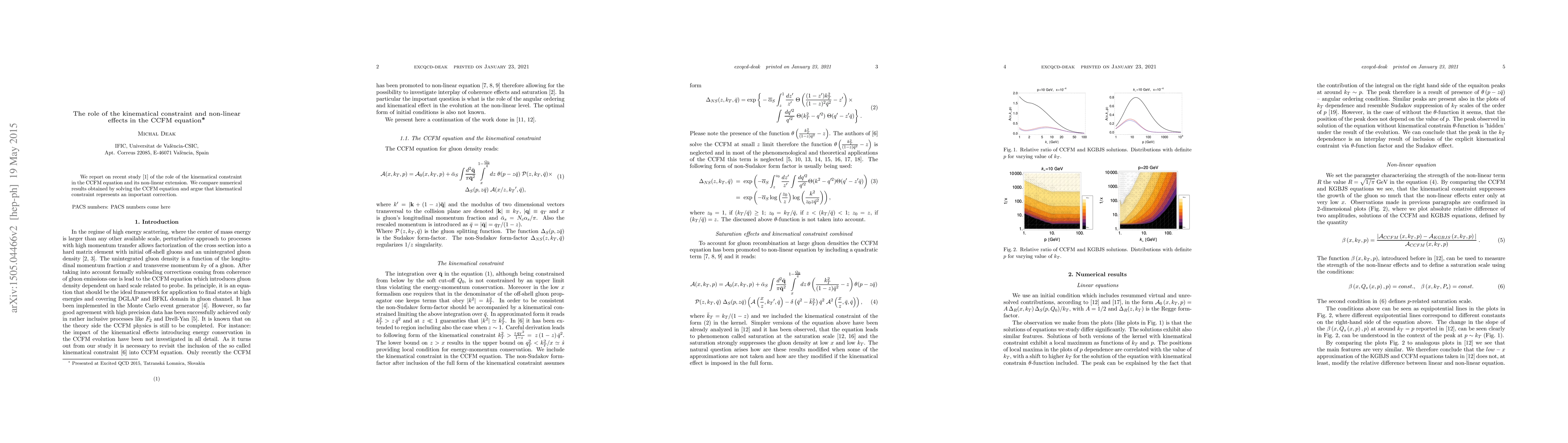 We report on recent study [1] of the role of the kinematical constraint in the CCFM equation and its non-linear extension. We compare numerical results obtained by solving the CCFM equation and argue that kinematical constraint represents an important correction.