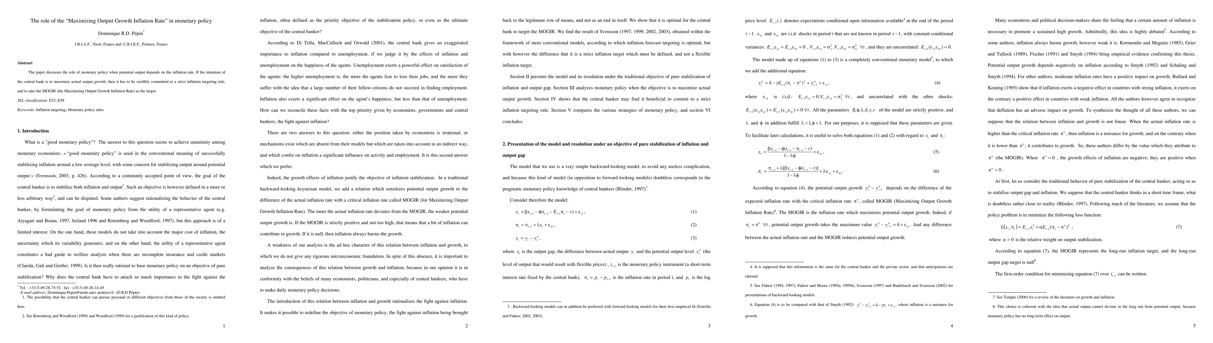 The paper discusses the role of monetary policy when potential output depends on the inflation rate. If the intention of the central bank is to maximize actual output growth, then it has to be credibly committed to a strict inflation targeting rule, and to take the MOGIR (the Maximizing Output Growth Inflation Rate) as the target.