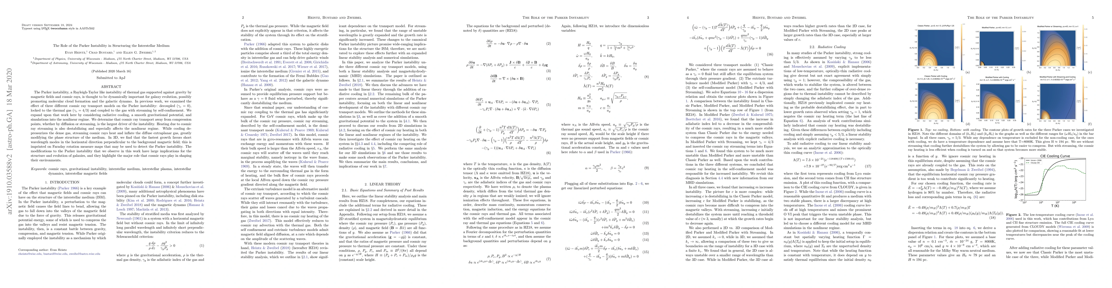 The Parker instability, driven by cosmic ray transport, significantly influences the interstellar medium's structure, promoting molecular cloud formation and affecting the galactic dynamo. Cosmic ray streaming, especially in the nonlinear regime, heats and inflates diffuse gas, altering the medium's phase structure and favoring short wavelength modes in Faraday rotation measure maps.