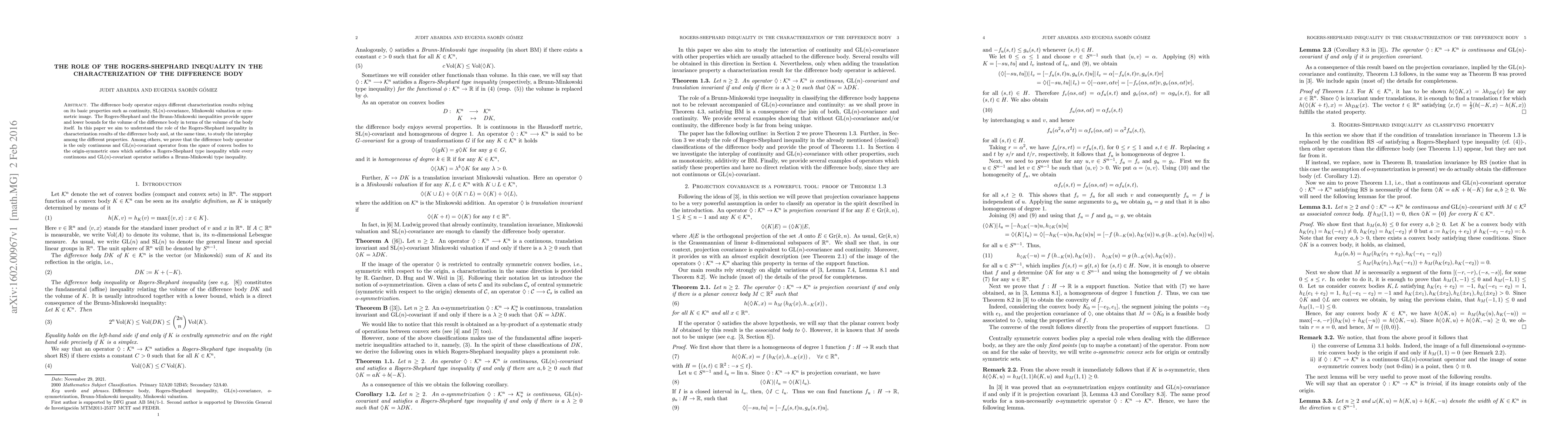 The difference body operator enjoys different characterization results relying on its basic properties such as continuity, SL(n)-covariance, Minkowski valuation or symmetric image. The Rogers-Shephard and the Brunn-Minkowski inequalities provide upper and lower bounds for the volume of the difference body in terms of the volume of the body itself. In this paper we aim to understand the role of the Rogers-Shephard inequality in characterization results of the difference body and, at the same time, to study the interplay among the different properties. Among others, we prove that the difference body operator is the only continuous and GL(n)-covariant operator from the space of convex bodies to the origin-symmetric ones which satisfies a Rogers-Shephard type inequality while every continuous and GL(n)-covariant operator satisfies a Brunn-Minkowski type inequality.
