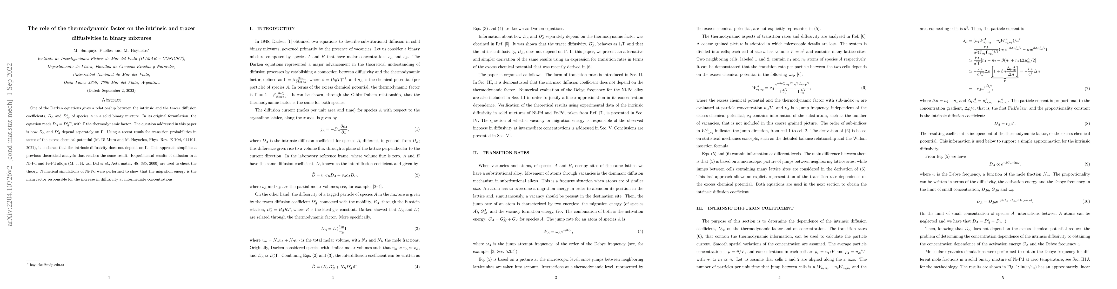 This paper investigates the dependence of intrinsic and tracer diffusion coefficients in binary solid mixtures on the thermodynamic factor $\Gamma$. It demonstrates that intrinsic diffusivity $D_A$ is independent of $\Gamma$, contrasting with the tracer diffusivity $D_A^*$, using theoretical analysis and experimental data from Ni-Pd and Fe-Pd alloys.
