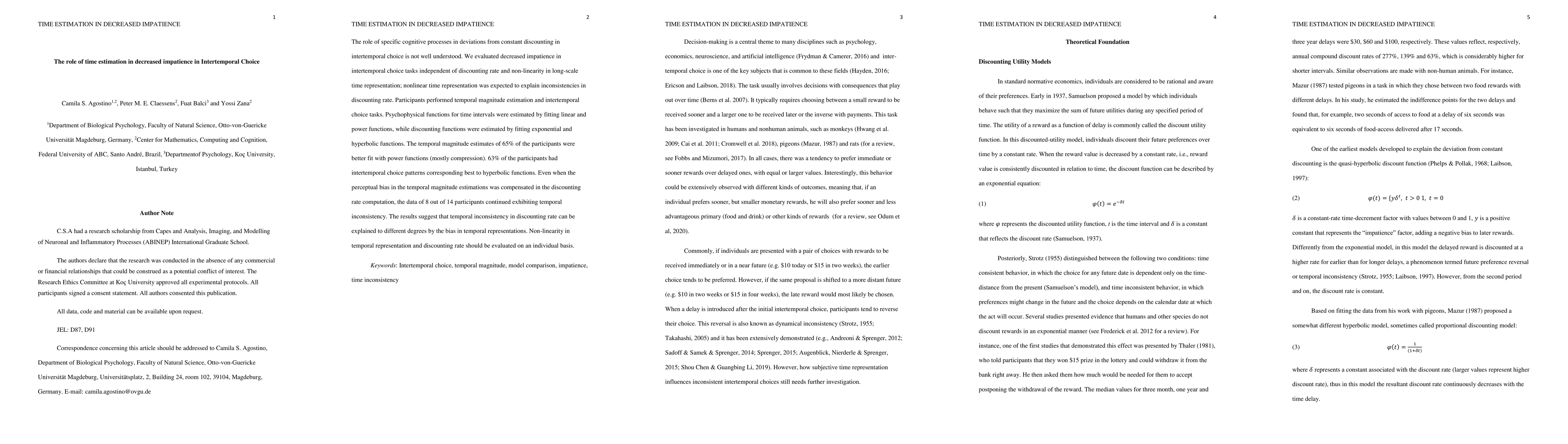 This study explores the cognitive processes behind deviations from constant discounting in intertemporal choice, finding that non-linear time representation significantly influences impatience. Participants' temporal magnitude estimations and intertemporal choice patterns suggest individual variability in how temporal biases affect discounting.