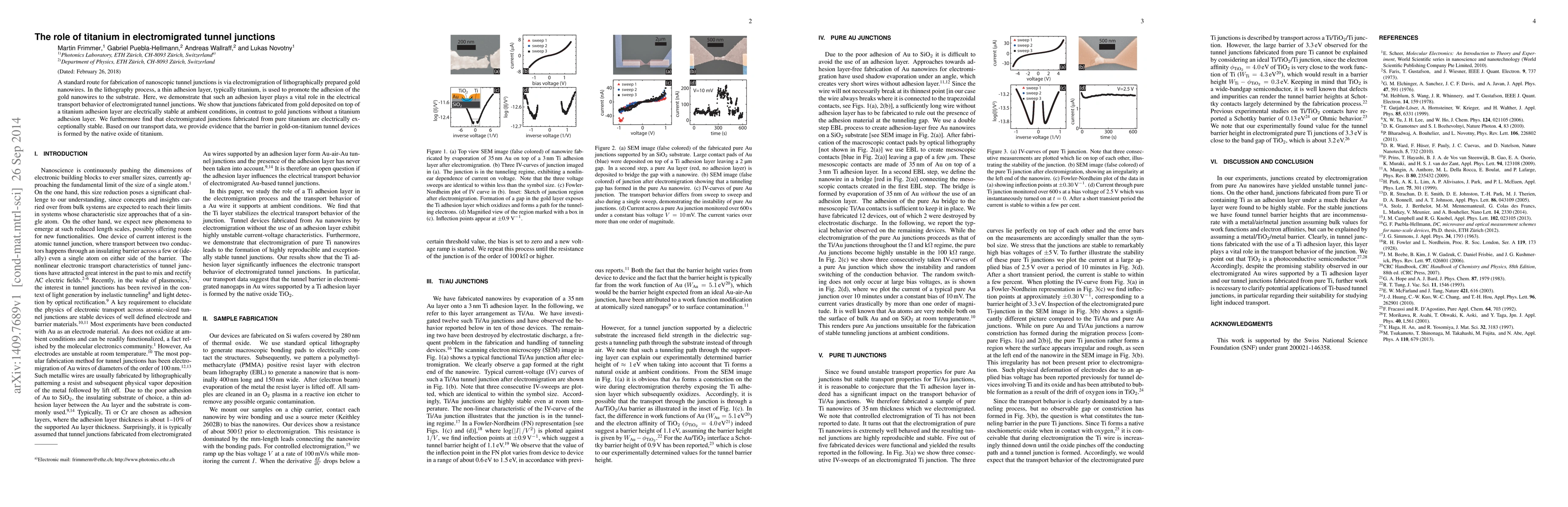 This paper investigates the role of titanium adhesion layers in electromigrated gold nanowire tunnel junctions, demonstrating that titanium enhances electrical stability due to the formation of a stable barrier by titanium's native oxide, contrasting with gold junctions without titanium.