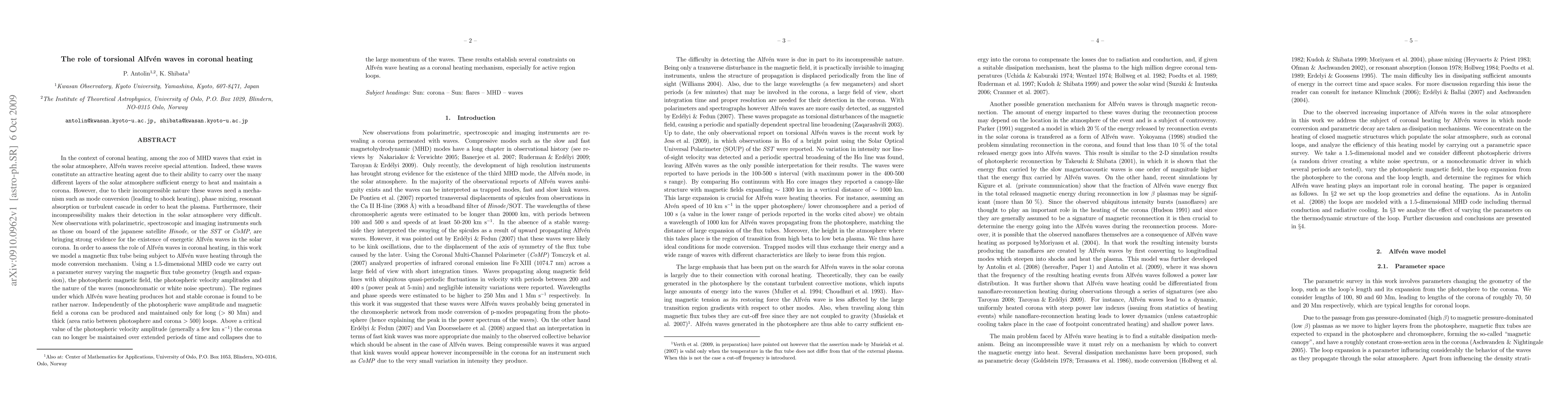 This paper investigates the role of torsional Alfven waves in coronal heating, finding that they can effectively heat and maintain a corona through mode conversion, but only for long and thick magnetic flux tubes. The study concludes that Alfven wave heating is constrained by the photospheric wave amplitude and magnetic field, with high momentum waves causing coronal collapse.