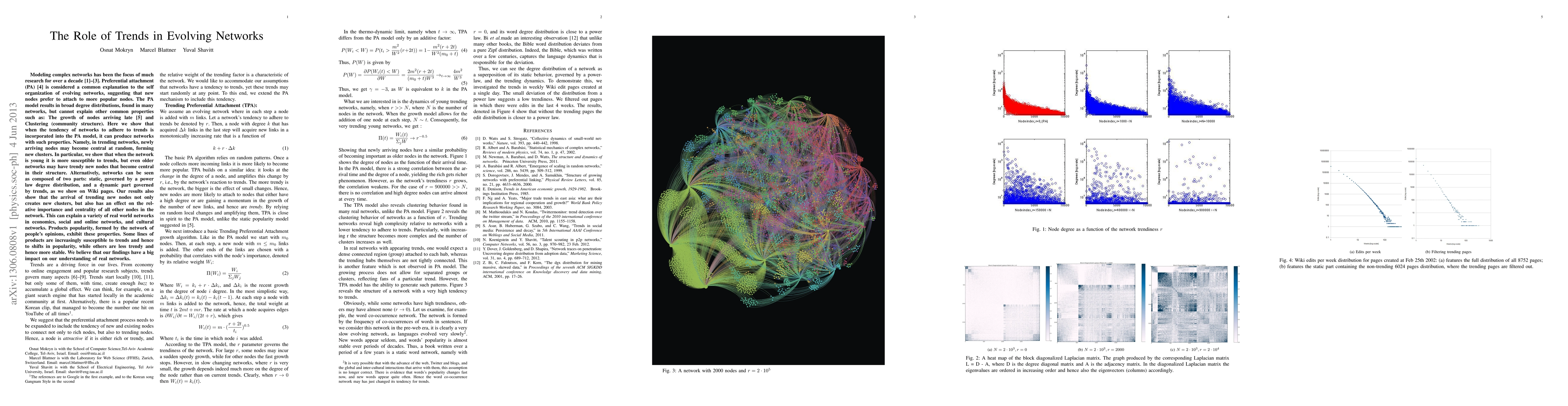 Modeling complex networks has been the focus of much research for over a decade. Preferential attachment (PA) is considered a common explanation to the self organization of evolving networks, suggesting that new nodes prefer to attach to more popular nodes. The PA model results in broad degree distributions, found in many networks, but cannot explain other common properties such as: The growth of nodes arriving late and Clustering (community structure). Here we show that when the tendency of networks to adhere to trends is incorporated into the PA model, it can produce networks with such properties. Namely, in trending networks, newly arriving nodes may become central at random, forming new clusters. In particular, we show that when the network is young it is more susceptible to trends, but even older networks may have trendy new nodes that become central in their structure. Alternatively, networks can be seen as composed of two parts: static, governed by a power law degree distribution, and a dynamic part governed by trends, as we show on Wiki pages. Our results also show that the arrival of trending new nodes not only creates new clusters, but also has an effect on the relative importance and centrality of all other nodes in the network. This can explain a variety of real world networks in economics, social and online networks, and cultural networks. Products popularity, formed by the network of people's opinions, exhibit these properties. Some lines of products are increasingly susceptible to trends and hence to shifts in popularity, while others are less trendy and hence more stable. We believe that our findings have a big impact on our understanding of real networks.