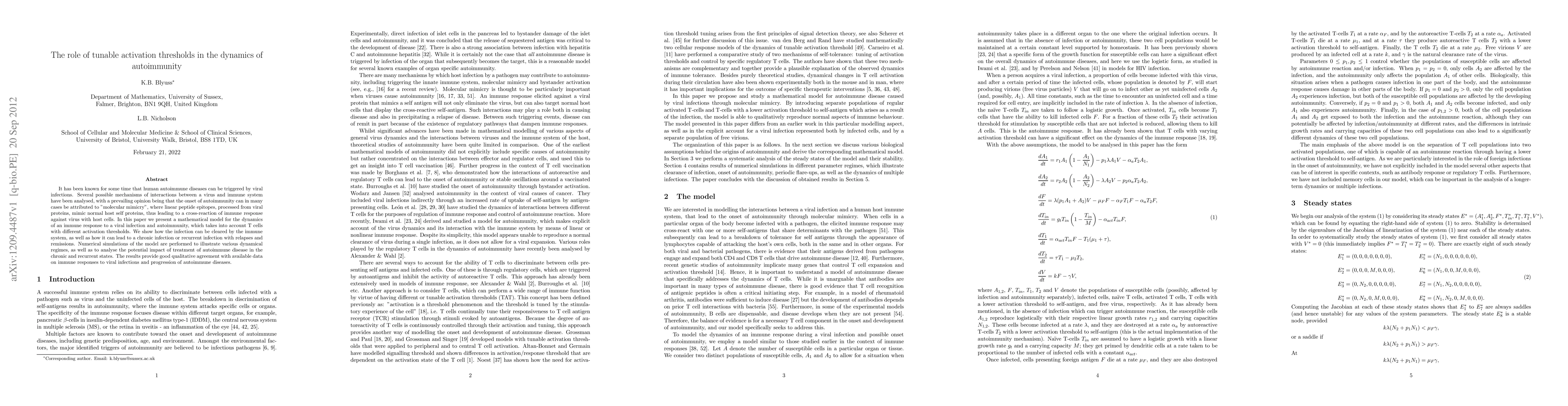 This paper presents a mathematical model exploring how tunable activation thresholds of T cells influence the dynamics of immune response to viral infections and the potential onset of autoimmunity due to molecular mimicry. The model demonstrates various outcomes, including infection clearance, chronic infection, or recurrent infections, and suggests implications for treating autoimmune diseases.