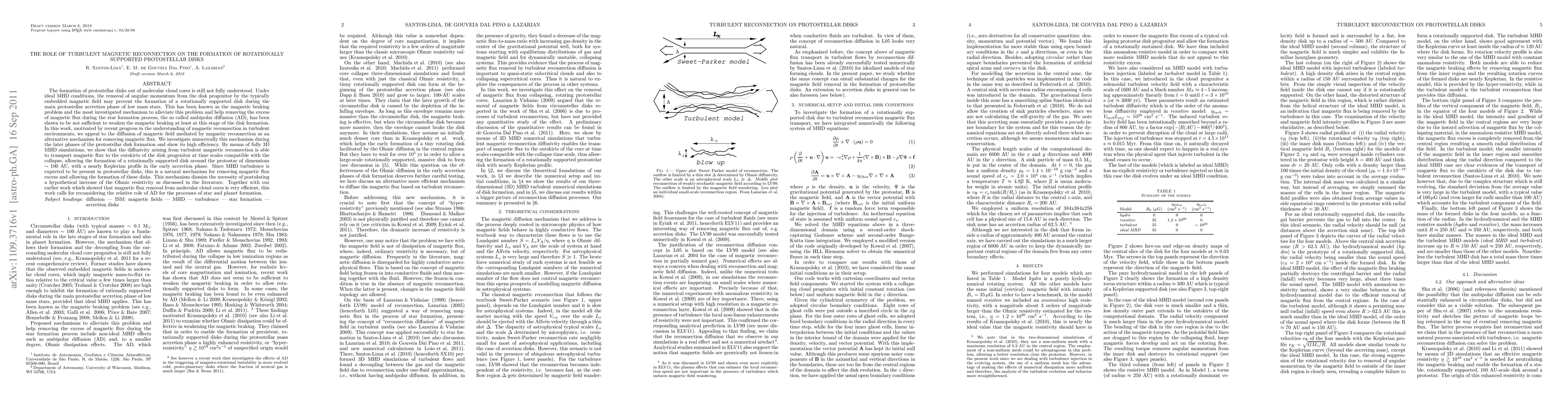 This paper investigates the role of turbulent magnetic reconnection in alleviating the magnetic braking problem during the formation of protostellar disks. Through 3D MHD simulations, the authors demonstrate that magnetic reconnection efficiently removes magnetic flux, facilitating the formation of rotationally supported disks, thus challenging the necessity of ambipolar diffusion.