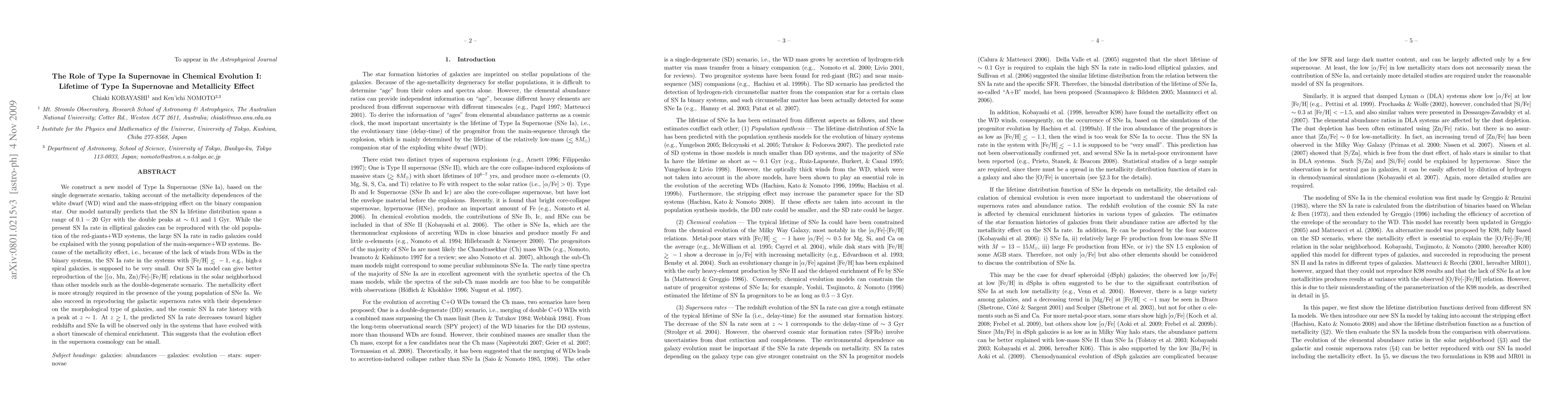 This research presents a new Type Ia Supernovae (SNe Ia) model based on the single degenerate scenario, considering metallicity effects. The model predicts a SN Ia lifetime range of 0.1-20 Gyr with peaks at ~0.1 and 1 Gyr. It explains varying SN Ia rates in different galaxy types and cosmic history, suggesting a small impact of supernova evolution on cosmology.