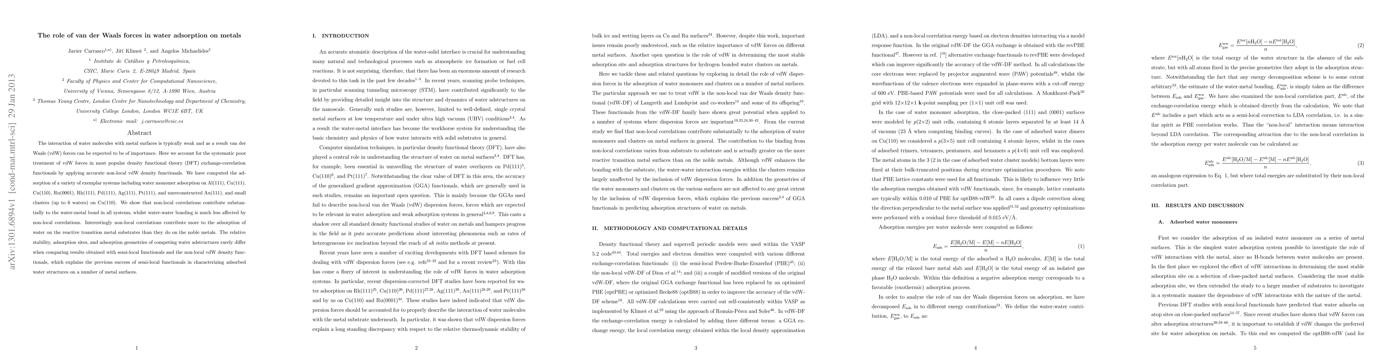 This study investigates the significance of van der Waals forces in water adsorption on various metal surfaces using advanced density functional theory, revealing substantial contributions of non-local correlations to water-metal interactions, especially on transition metals, while noting minimal impact on water-water bonding. Despite this, semi-local functionals still provide accurate structural predictions.