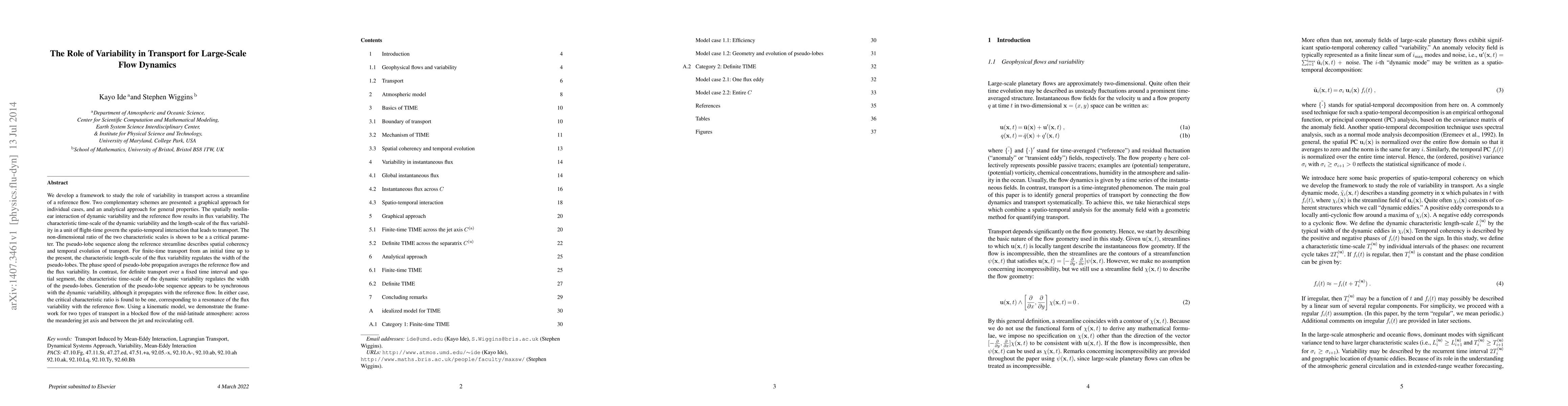 This research introduces a framework analyzing variability's role in transport across a reference flow, using graphical and analytical approaches. Key findings include the critical influence of dynamic variability's time-scale and flux variability's length-scale on transport, with a non-dimensional ratio of one identified as crucial. The study applies this to atmospheric transport in blocked flows, demonstrating pseudo-lobe sequences' generation and propagation synchronous with dynamic variability, averaging reference flow and flux variability phase speeds.