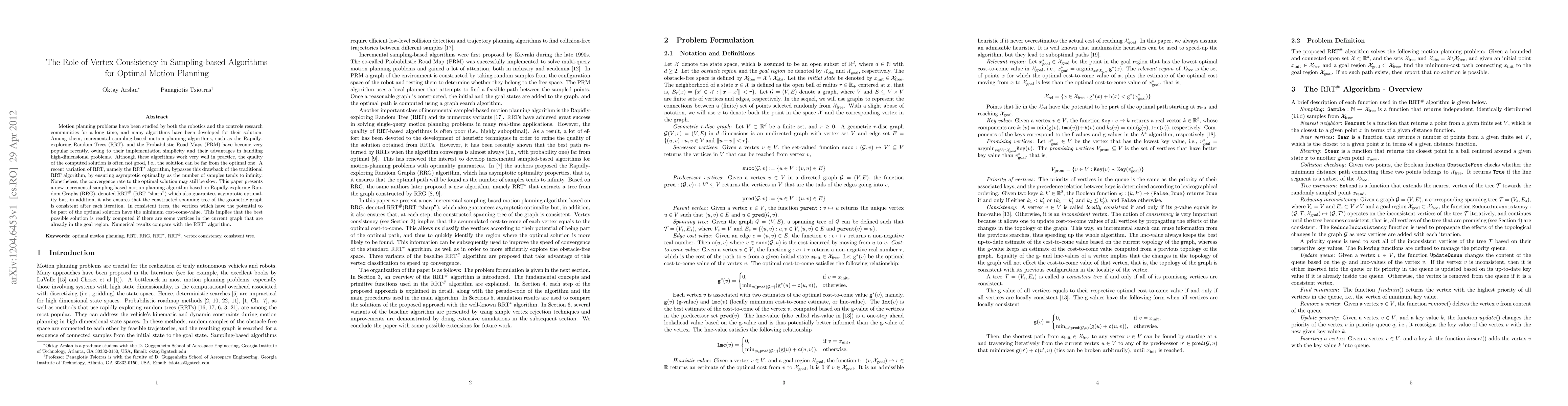 Motion planning problems have been studied by both the robotics and the controls research communities for a long time, and many algorithms have been developed for their solution. Among them, incremental sampling-based motion planning algorithms, such as the Rapidly-exploring Random Trees (RRTs), and the Probabilistic Road Maps (PRMs) have become very popular recently, owing to their implementation simplicity and their advantages in handling high-dimensional problems. Although these algorithms work very well in practice, the quality of the computed solution is often not good, i.e., the solution can be far from the optimal one. A recent variation of RRT, namely the RRT* algorithm, bypasses this drawback of the traditional RRT algorithm, by ensuring asymptotic optimality as the number of samples tends to infinity. Nonetheless, the convergence rate to the optimal solution may still be slow. This paper presents a new incremental sampling-based motion planning algorithm based on Rapidly-exploring Random Graphs (RRG), denoted RRT# (RRT "sharp") which also guarantees asymptotic optimality but, in addition, it also ensures that the constructed spanning tree of the geometric graph is consistent after each iteration. In consistent trees, the vertices which have the potential to be part of the optimal solution have the minimum cost-come-value. This implies that the best possible solution is readily computed if there are some vertices in the current graph that are already in the goal region. Numerical results compare with the RRT* algorithm.
