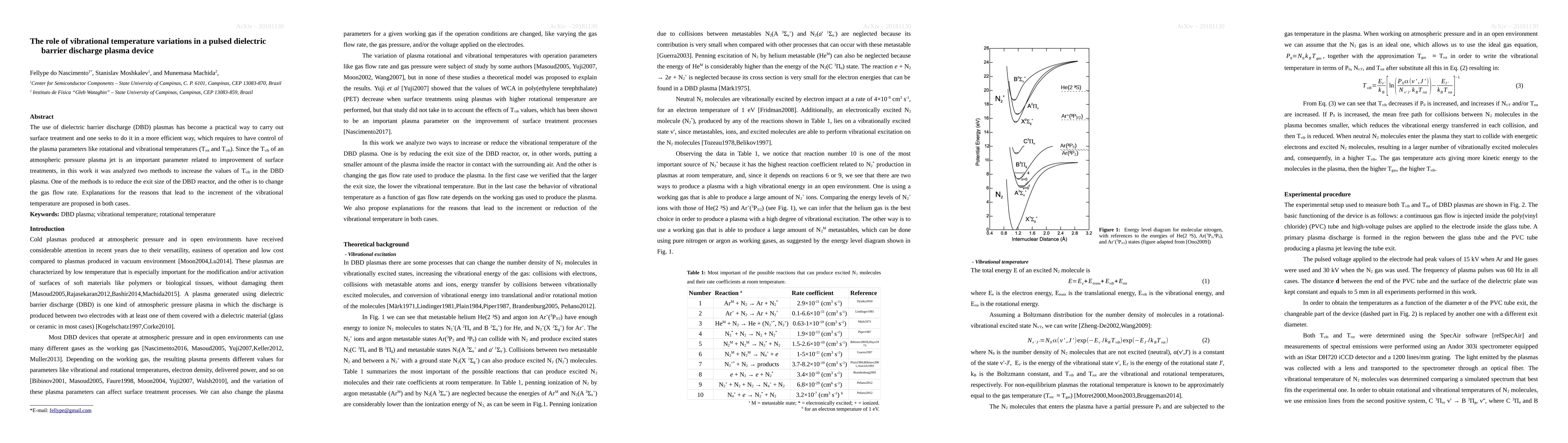 This paper investigates methods to enhance the vibrational temperature (T_vib) in a pulsed dielectric barrier discharge (DBD) plasma device, crucial for improving surface treatment efficiency. Two approaches are analyzed: reducing the reactor exit size and adjusting the gas flow rate, with explanations provided for the resultant increase in T_vib.