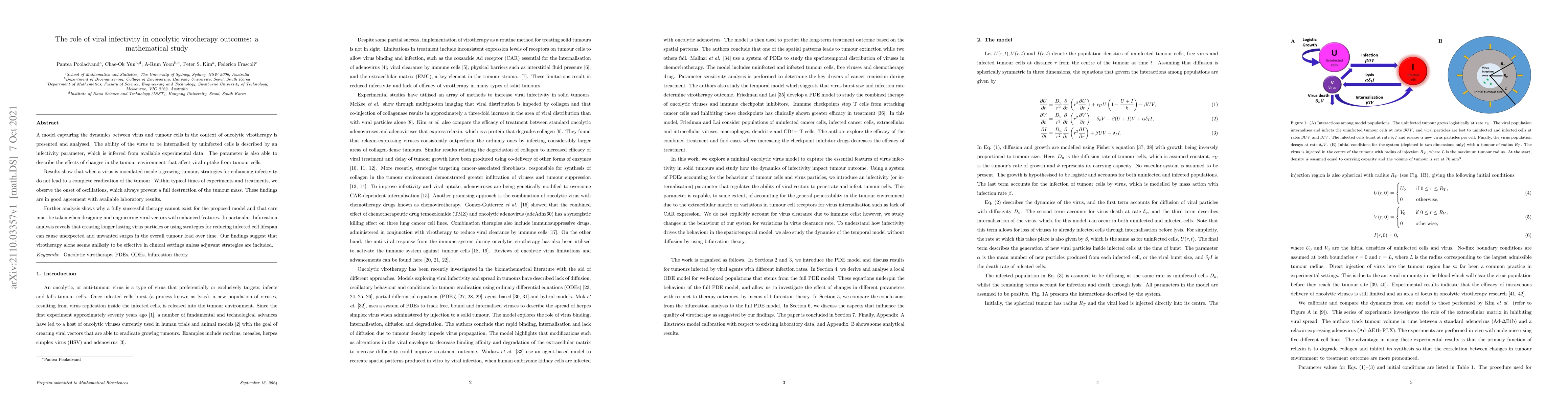This study models the dynamics of oncolytic virotherapy, finding that while viral infectivity is crucial, it does not guarantee complete tumour eradication due to oscillations and potential surges in tumour load. The research suggests that virotherapy must be combined with adjuvant strategies for effective clinical outcomes.