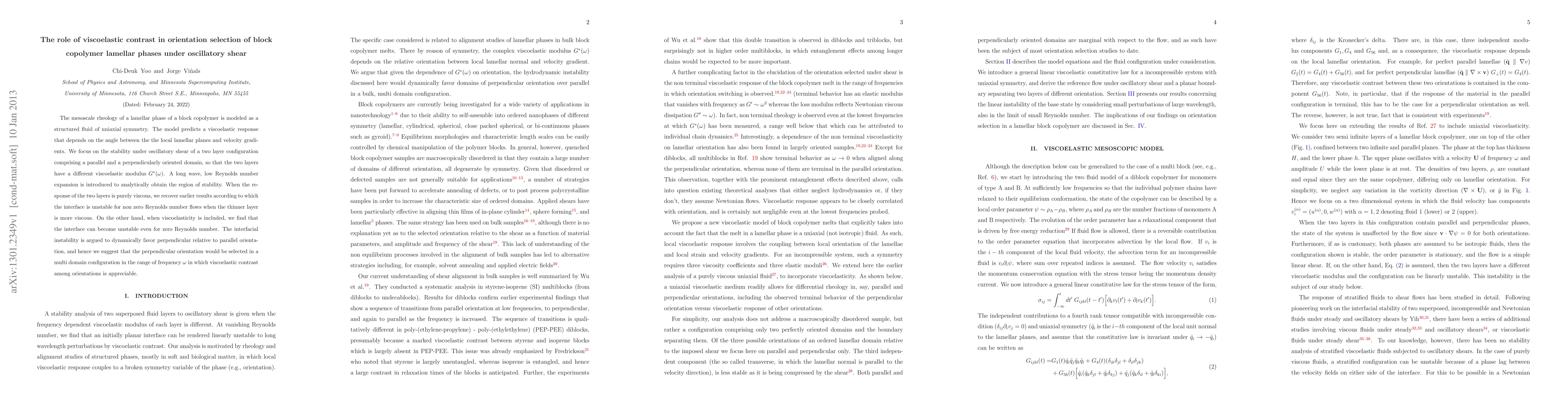 This paper models the viscoelastic behavior of block copolymer lamellar phases under oscillatory shear, finding that viscoelastic contrast can lead to instability favoring perpendicular orientation over parallel, suggesting a shift in orientation selection due to frequency-dependent viscoelastic properties.