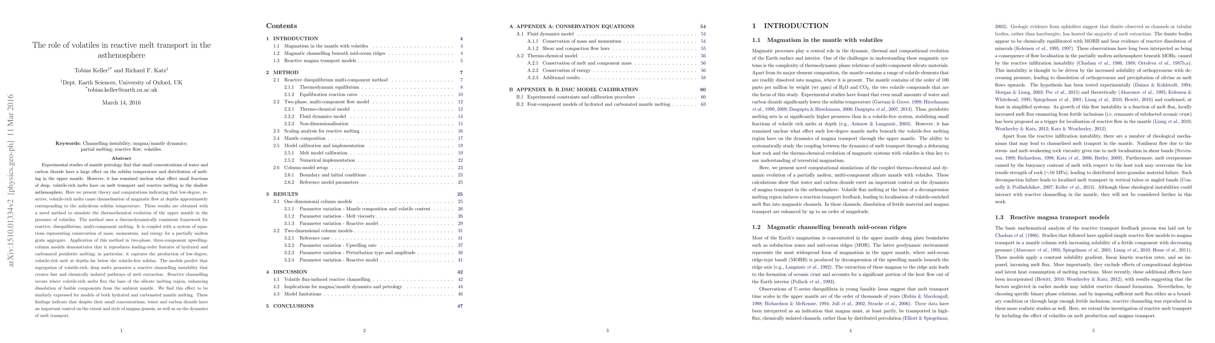 This paper explores how small amounts of water and carbon dioxide influence melt transport and reactive melting in the asthenosphere, demonstrating that volatile-rich melts create channelized pathways for magmatic flow, significantly affecting magma genesis and melt dynamics.