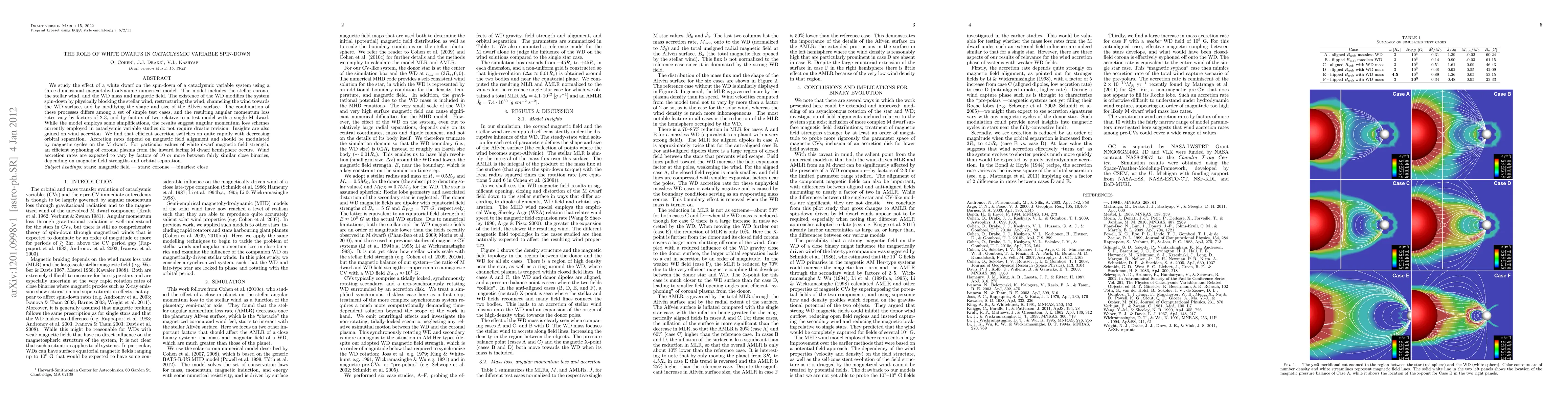 We study the effect of a white dwarf on the spin-down of a cataclysmic variable system using a three-dimensional magnetohydrodynamic numerical model. The model includes the stellar corona, the stellar wind, and the WD mass and magnetic field. The existence of the WD modifies the system spin-down by physically blocking the stellar wind, restructuring the wind, channeling the wind towards the WD surface, and by modifying the shape and size of the Alfv\'en surface. The combination of these processes differs among a set of simple test cases, and the resulting angular momentum loss rates vary by factors of 2-3, and by factors of two relative to a test model with a single M dwarf. While the model employs some simplifications, the results suggest angular momentum loss schemes currently employed in cataclysmic variable studies do not require drastic revision. Insights are also gained on wind accretion. We find that efficient accretion switches on quite rapidly with decreasing orbital separation. Accretion rates depend on magnetic field alignment and should be modulated by magnetic cycles on the M dwarf. For particular values of white dwarf magnetic field strength, an efficient syphoning of coronal plasma from the inward facing M dwarf hemisphere occurs. Wind accretion rates are expected to vary by factors of 10 or more between fairly similar close binaries, depending on magnetic field strengths and orbital separation.