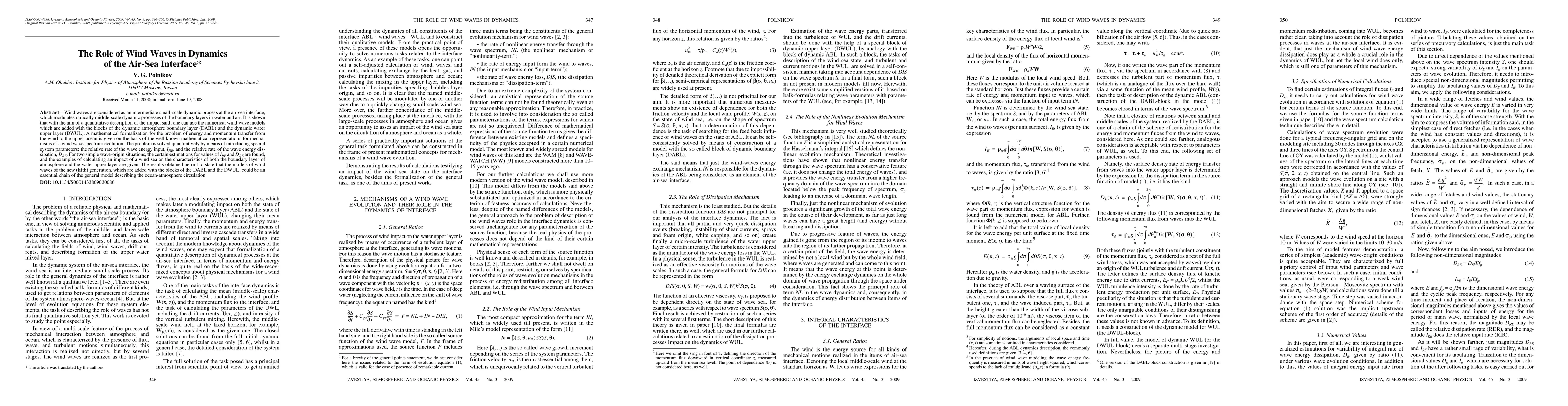 Wind waves are considered as an intermediate small-scale dynamic process at the air-sea interface,which modulates radically middle-scale dynamic processes of the boundary layers in water and air. It is shown that with the aim of a quantitative description of the impact said, one can use the numerical wind wave models which are added with the blocks of the dynamic atmosphere boundary layer (DABL) and the dynamic water upper layer (DWUL). A mathematical formalization for the problem of energy and momentum transfer from the wind to the upper ocean is given on the basis of the well known mathematical representations for mechanisms of a wind wave spectrum evolution. The problem is solved quantitatively by means of introducing special system parameters: the relative rate of the wave energy input, IRE, and the relative rate of the wave energy dissipation, DRE. For two simple wave-origin situations, the certain estimations for values of IRE and DRE are found, and the examples of calculating an impact of a wind sea on the characteristics of both the boundary layer of atmosphere and the water upper layer are given. The results obtained permit to state that the models of wind waves of the new (fifth) generation, which are added with the blocks of the DABL and the DWUL, could be an essential chain of the general model describing the ocean-atmosphere circulation.