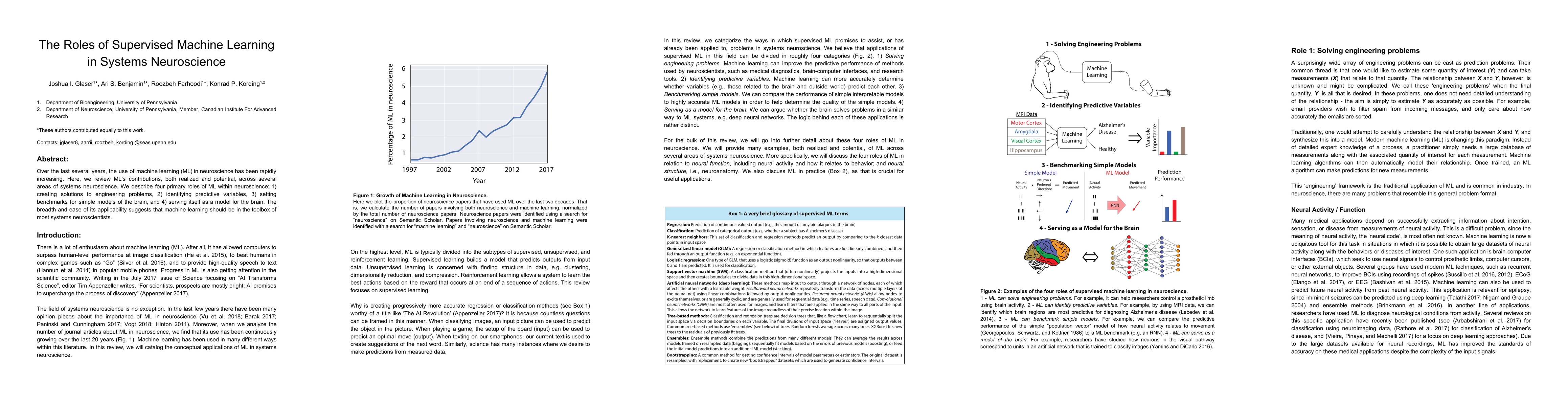 This paper reviews the expanding role of supervised machine learning in systems neuroscience, highlighting its contributions to solving engineering problems, identifying predictive variables, establishing benchmarks for brain models, and potentially serving as a model for the brain itself. The versatility of ML suggests it should be a standard tool for systems neuroscientists.