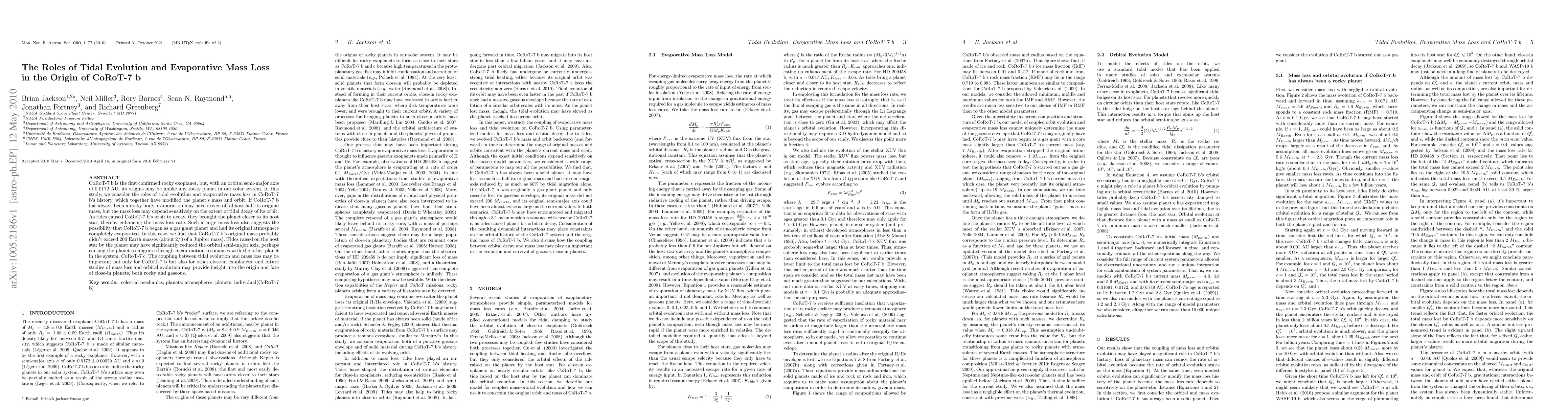 CoRoT-7 b is the first confirmed rocky exoplanet, but, with an orbital semi-major axis of 0.0172 AU, its origins may be unlike any rocky planet in our solar system. In this study, we consider the roles of tidal evolution and evaporative mass loss in CoRoT-7 b's history, which together have modified the planet's mass and orbit. If CoRoT-7 b has always been a rocky body, evaporation may have driven off almost half its original mass, but the mass loss may depend sensitively on the extent of tidal decay of its orbit. As tides caused CoRoT-7 b's orbit to decay, they brought the planet closer to its host star, thereby enhancing the mass loss rate. Such a large mass loss also suggests the possibility that CoRoT-7 b began as a gas giant planet and had its original atmosphere completely evaporated. In this case, we find that CoRoT-7 b's original mass probably didn't exceed 200 Earth masses (about 2/3 of a Jupiter mass). Tides raised on the host star by the planet may have significantly reduced the orbital semi-major axis, perhaps causing the planet to migrate through mean-motion resonances with the other planet in the system, CoRoT-7 c. The coupling between tidal evolution and mass loss may be important not only for CoRoT-7 b but also for other close-in exoplanets, and future studies of mass loss and orbital evolution may provide insight into the origin and fate of close-in planets, both rocky and gaseous.