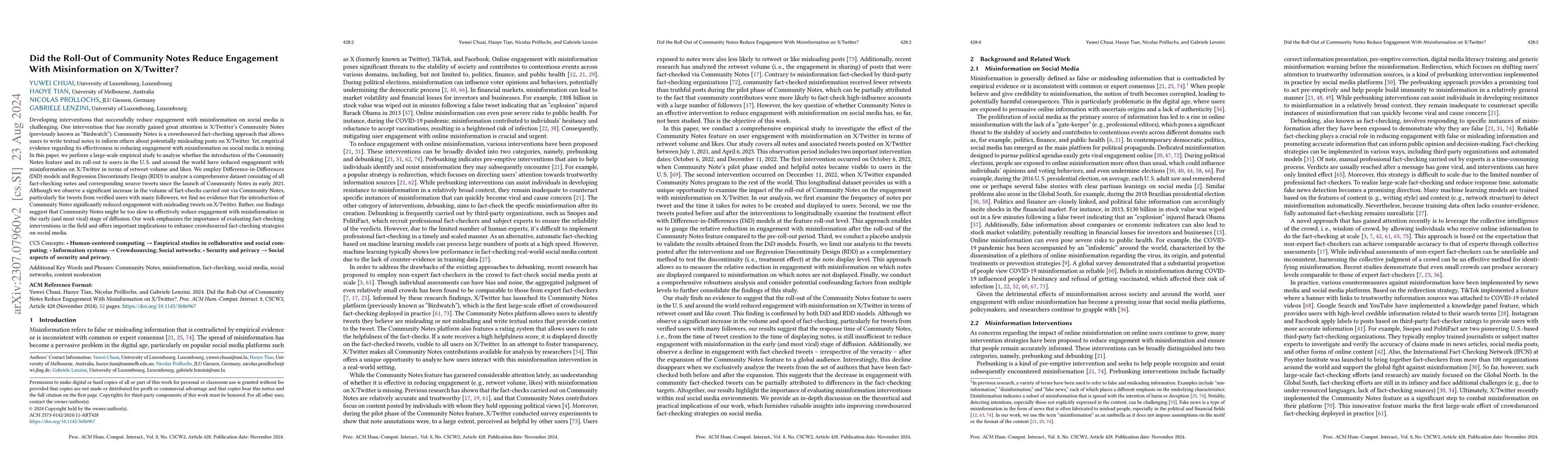 This paper finds that Twitter's Community Notes, a crowdsourced fact-checking feature, did not reduce engagement with misinformation, measured by retweet volume and likes. Despite the increase in fact-checks, particularly for influential users, the study reveals no significant reduction in misinformation engagement, suggesting the intervention may be too slow to be effective.