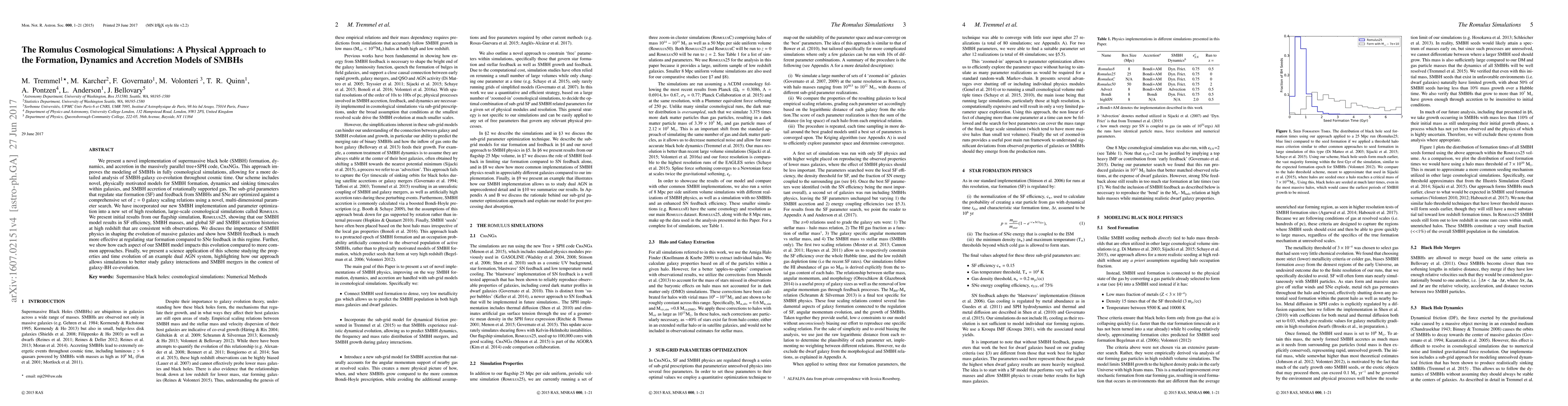 The Romulus Cosmological Simulations introduce a new method for modeling supermassive black hole (SMBH) formation, dynamics, and accretion in cosmological simulations, showing improved consistency with observational data. The study highlights the significant role of SMBH feedback in regulating star formation and demonstrates the impact of the new model on the co-evolution of SMBHs and galaxies.