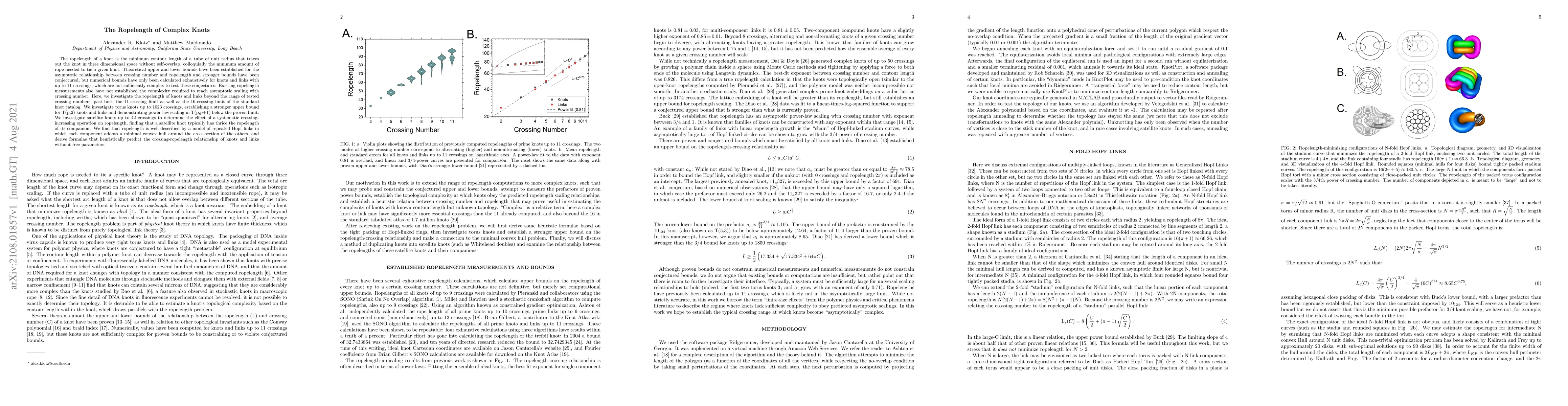 The ropelength of a knot is the minimum contour length of a tube of unit radius that traces out the knot in three dimensional space without self-overlap, colloquially the minimum amount of rope needed to tie a given knot. Theoretical upper and lower bounds have been established for the asymptotic relationship between crossing number and ropelength and stronger bounds have been conjectured, but numerical bounds have only been calculated exhaustively for knots and links with up to 11 crossings, which are not sufficiently complex to test these conjectures. Existing ropelength measurements also have not established the complexity required to reach asymptotic scaling with crossing number. Here, we investigate the ropelength of knots and links beyond the range of tested crossing numbers, past both the 11-crossing limit as well as the 16-crossing limit of the standard knot catalog. We investigate torus knots up to 1023 crossings, establishing a stronger upper bound for T(p,2) knots and links and demonstrating power-law scaling in T(p,p+1) below the proven limit. We investigate satellite knots up to 42 crossings to determine the effect of a systematic crossing-increasing operation on ropelength, finding that a satellite knot typically has thrice the ropelength of its companion. We find that ropelength is well described by a model of repeated Hopf links in which each component adopts a minimal convex hull around the cross-section of the others, and derive formulae that heuristically predict the crossing-ropelength relationship of knots and links without free parameters.