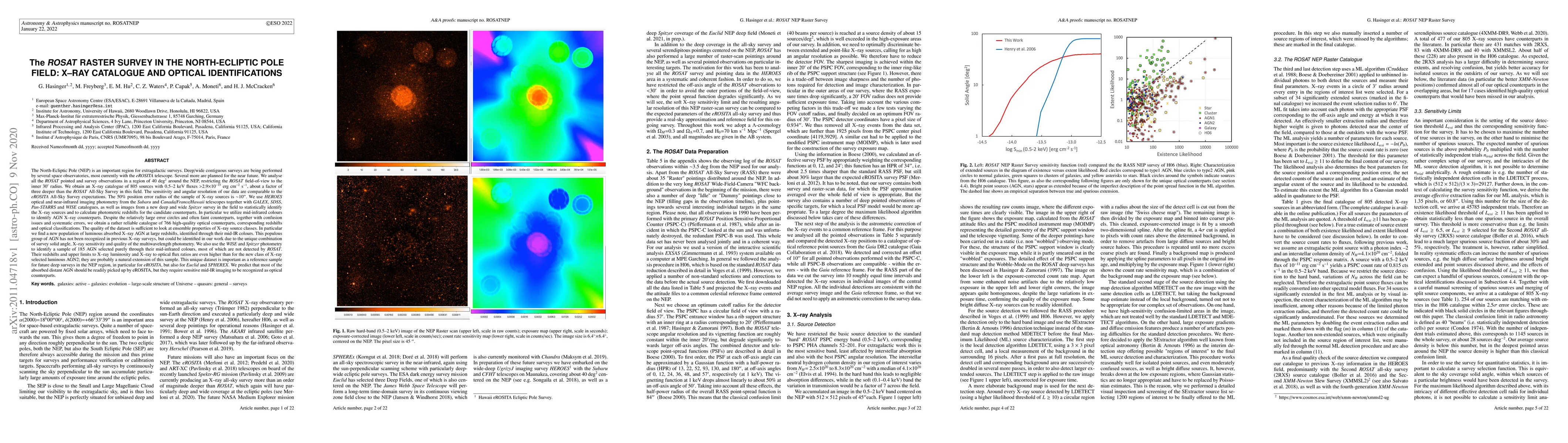 This paper presents an X-ray catalogue of 805 sources from ROSAT observations around the North-Ecliptic Pole, identifying 766 optical counterparts using multiwavelength data. It reveals a new population of luminous absorbed X-ray AGN at large redshifts, highlighting the importance of deep surveys and multiwavelength photometry in extragalactic studies.