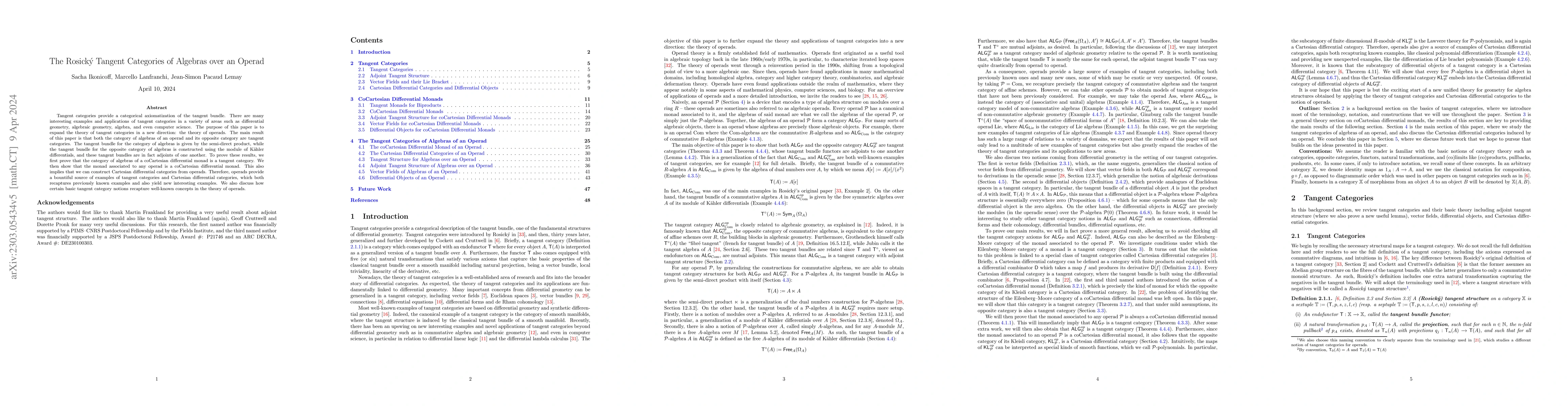 This paper expands the theory of tangent categories to algebras over an operad, proving that both the category of algebras of an operad and its opposite are tangent categories. It introduces new tangent bundles using semi-direct products and Kähler differentials, showing they are adjoints of each other, thus providing a rich source of examples for both tangent and Cartesian differential categories.