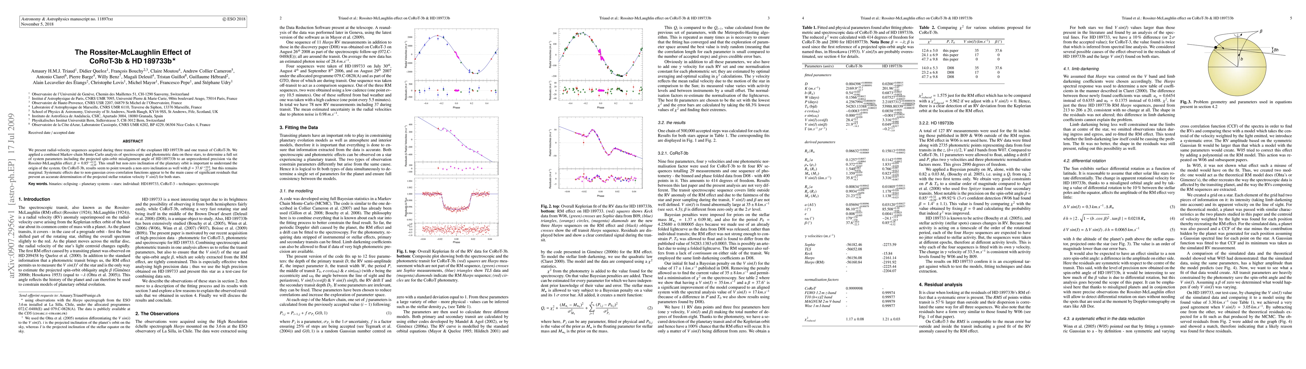 We present radial-velocity sequences acquired during three transits of the exoplanet HD 189733b and one transit of the CoRoT-3b. We applied a combined Markov-Chain Monte Carlo analysis of spectroscopic and photometric data on these stars, to determine a full set of system parameters including the project spin-orbit misalignement angle of HD 189733b to an unprecedented precision via the Rossiter-McLaughlin effect: beta = 0.85 degrees (+0.32 -0.28) . This small but non-zero inclination of the planetary orbit is important to understand the origin of the system. On CoRoT-3b, results seem to point towards a non-zero inclination as well with beta = 37.6 degrees (+10.0 -22.3), but this remains marginal. Systematic effects due to non-gaussian cross-correlation functions appear to be the main cause of significant residuals that prevent an accurate determination of the projected stellar rotation velocity V sin(I) for both stars.