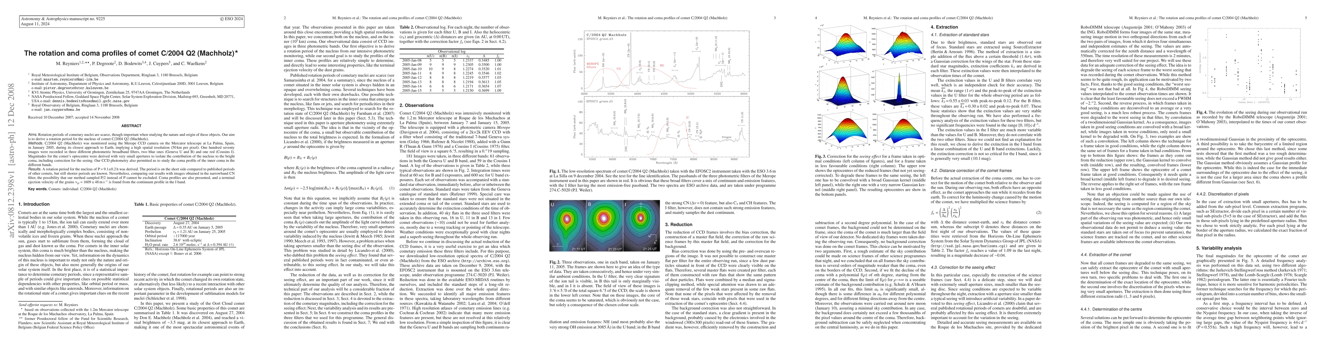 Comet C/2004 Q2 (Machholz) was found to have a short rotation period of 9.1 hours, while its coma profile showed a terminal ejection velocity of grains at 1609 m/s.