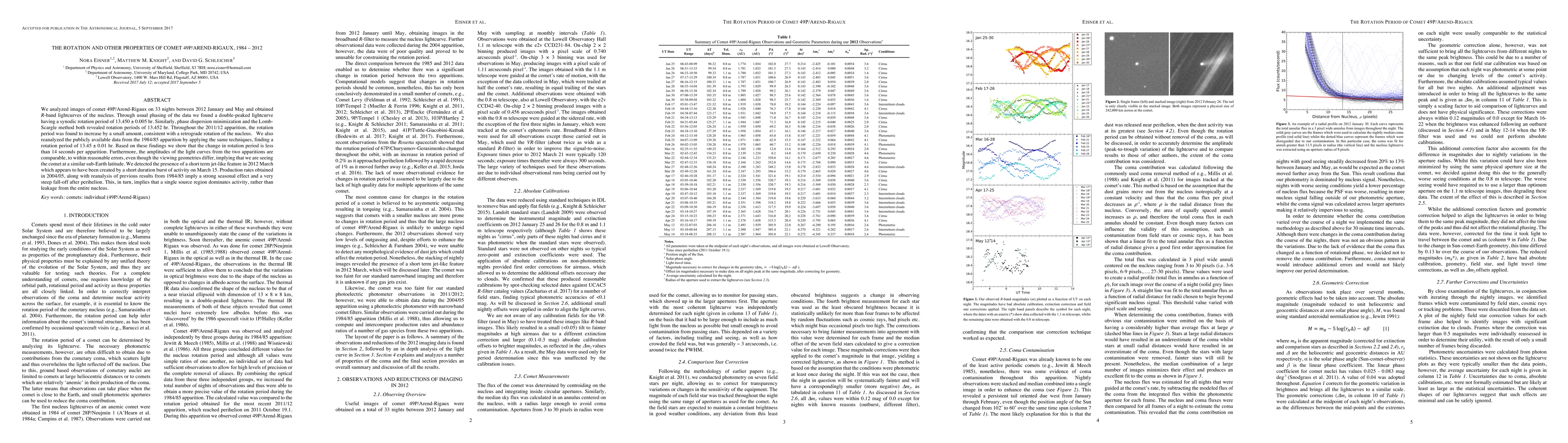 This study provided a comprehensive analysis of comet 49P/Arend-Rigaux's rotation period over multiple apparitions, highlighting the stability of its rotation and detecting a short-term jet-like feature, contributing novel insights into cometary activity and behavior.