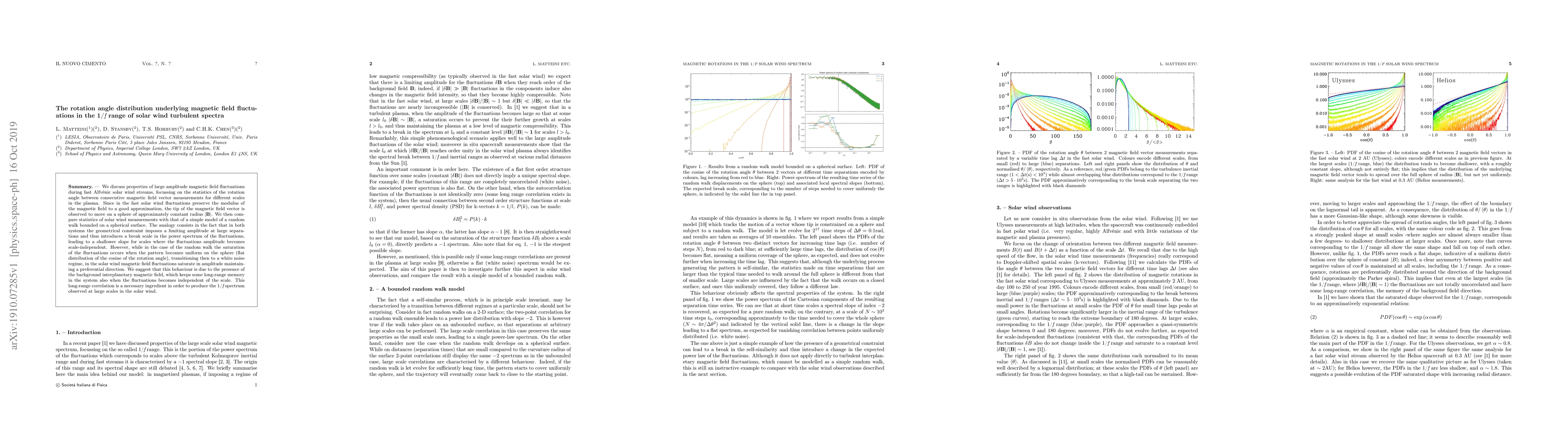 The paper investigates the rotation angle distribution of magnetic field fluctuations in solar wind turbulent spectra, finding that they follow a power-law decay with scale, but differ from a simple random walk model due to long-range correlations caused by the background interplanetary magnetic field.