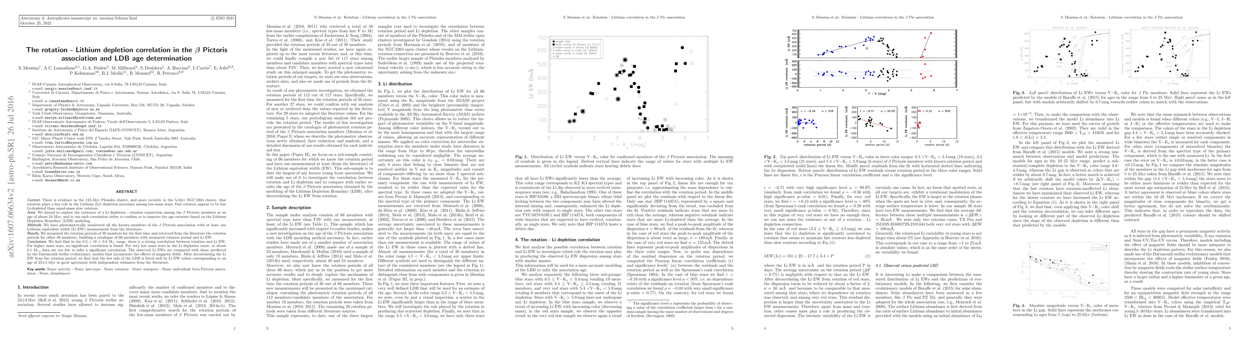 There is evidence in the 125-Myr Pleiades cluster, and more recently in the 5-Myr NGC 2264 cluster, that rotation plays a key role in the Lithium (Li) depletion processes among low-mass stars. Fast rotators appear to be less Li-depleted than equal-mass slow rotators. We intend to explore the existence of a Li depletion - rotation connection among the beta Pictoris members at an age of about 24 Myr, and to use such correlation either to confirm or to improve the age estimate based on the Lithium Depletion Boundary (LDB) modeling. We have photometrically monitored all the known members of the beta Pictoris association with at least one Lithium equivalent width (Li EW) measurement from the literature. We measured the rotation periods of 30 members for the first time and retrieved from the literature the rotation periods for other 36 members, building a catalogue of 66 members with measured rotation period and Li EW. We find that in the 0.3 < M < 0.8 Msun range, there is a strong correlation between rotation and Li EW. For higher mass stars, no significant correlation is found. For very low mass stars in the Li depletion onset, at about 0.1 Msun, data are too few to infer a significant correlation. The observed Li EWs are compared with those predicted by the Dartmouth stellar evolutionary models that incorporate the effects of magnetic fields. After decorrelating the Li EW from the rotation period, we find that the hot side of the LDB is fitted well by Li EW values corresponding to an age of 25$\pm$3 Myr in good agreement with independent estimates from the literature.