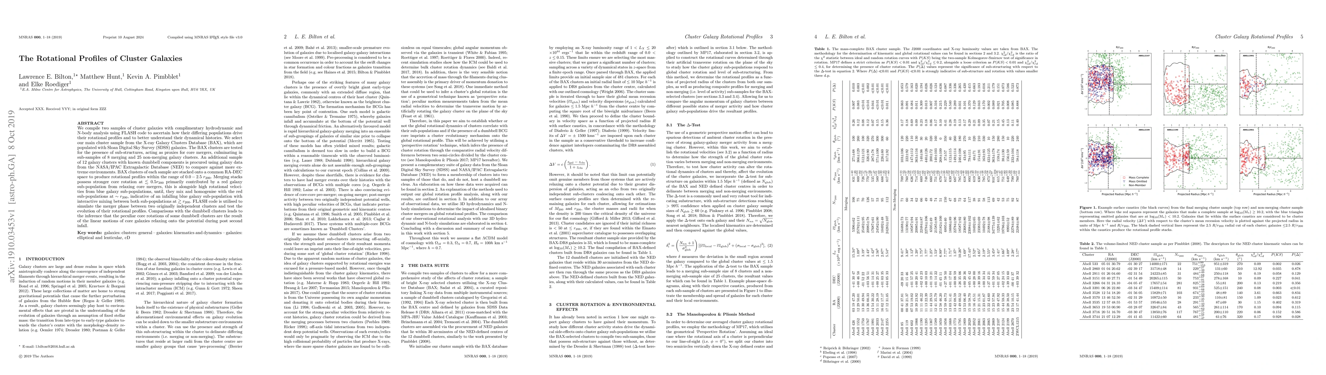 We compile two samples of cluster galaxies with complimentary hydrodynamic and N-body analysis using FLASH code to ascertain how their differing populations drive their rotational profiles and to better understand their dynamical histories. We select our main cluster sample from the X-ray Galaxy Clusters Database (BAX), which are populated with Sloan Digital Sky Survey (SDSS) galaxies. The BAX clusters are tested for the presence of sub-structures, acting as proxies for core mergers, culminating in sub-samples of 8 merging and 25 non-merging galaxy clusters. An additional sample of 12 galaxy clusters with known dumbbell components is procured using galaxy data from the NASA/IPAC Extragalactic Database (NED) to compare against more extreme environments. BAX clusters of each sample are stacked onto a common RA-DEC space to produce rotational profiles within the range of $0.0 - 2.5$ $r_{200}$. Merging stacks possess stronger core rotation at $\lesssim 0.5 r_{200}$ primarily contributed by a red galaxy sub-population from relaxing core mergers, this is alongside high rotational velocities from blue galaxy sub-populations, until, they mix and homogenise with the red sub-populations at $\sim r_{200}$, indicative of an infalling blue galaxy sub-population with interactive mixing between both sub-populations at $\gtrsim r_{200}$. FLASH code is utilised to simulate the merger phase between two originally independent clusters and test the evolution of their rotational profiles. Comparisons with the dumbbell clusters leads to the inference that the peculiar core rotations of some dumbbell clusters are the result of the linear motions of core galaxies relaxing onto the potential during post second infall.